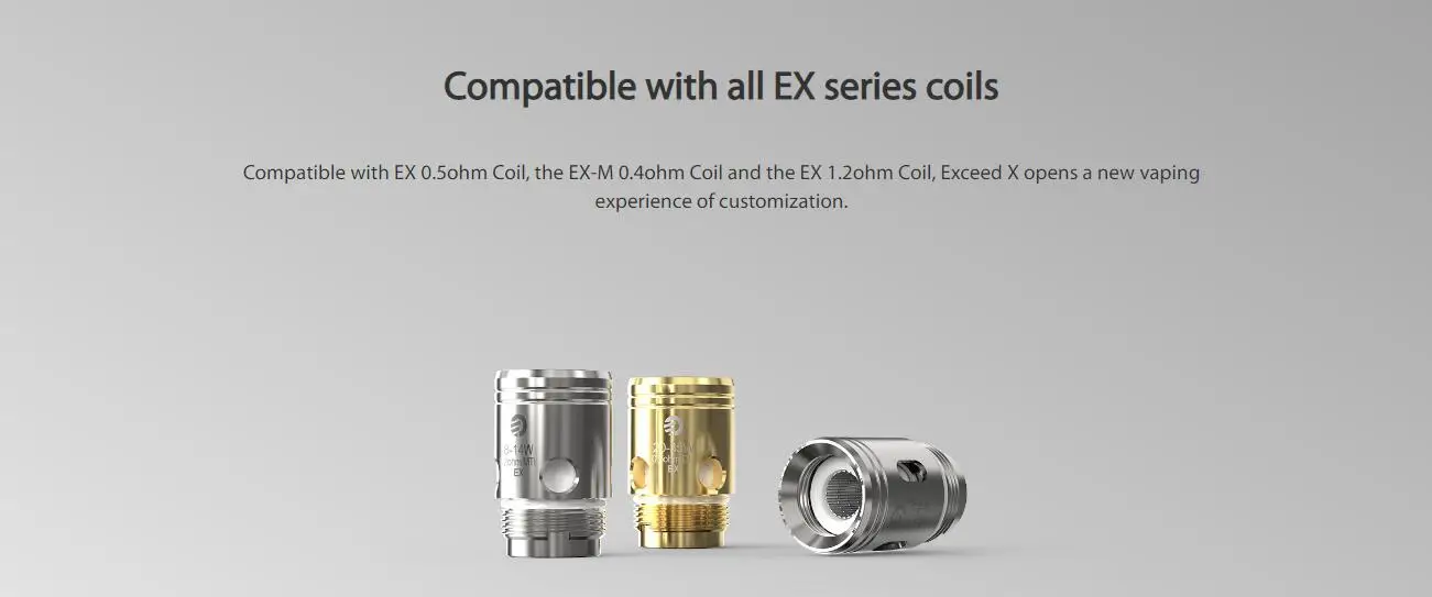 Аккумулятор-1 шт. 1 x атомайзер EXCEED X 1 x EX 1,2 Ом MTL. Головка 1 x EX-M 0.4ohm головы 1 x TYPE-C кабель 1 x силиконовым кольщом 1 x Стекло трубки 2 x Предупреждение карты