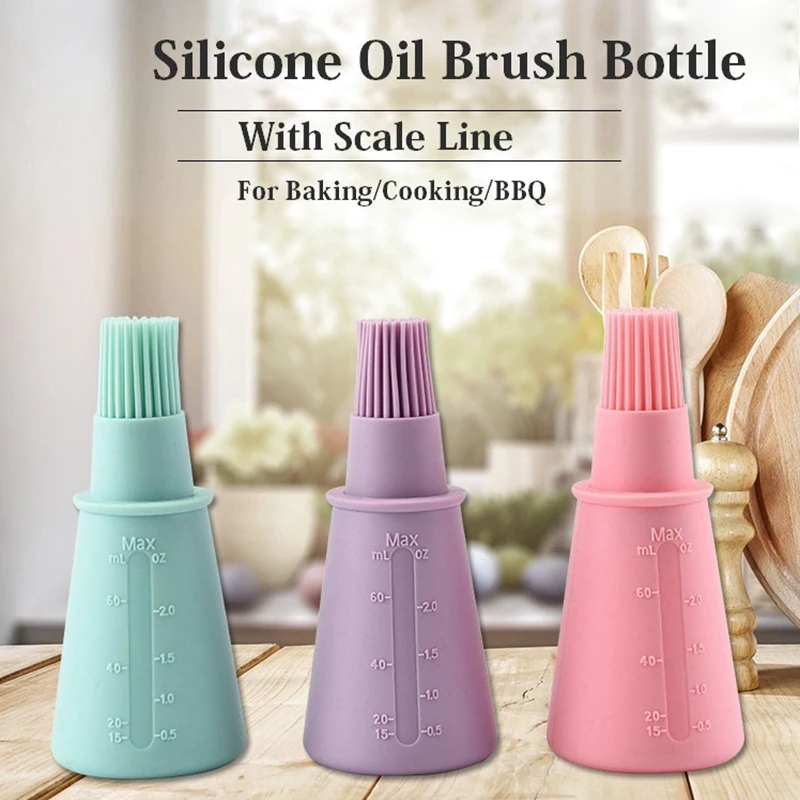 Название: Силиконовая масляная щетка с бутылкой Размер изделия: около 5,1*11,68 см Цвет: зеленый/розовый/фиолетовый Основной Материал: пищевой силикон