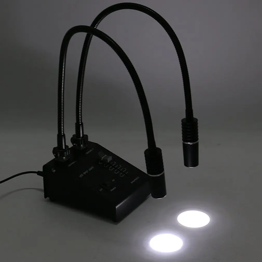 6W Dual LED Gooseneck Lights Illuminator Lamp Source For Industry Stereo Microscope Lens Camera Magnifier 110V-240V Adapter