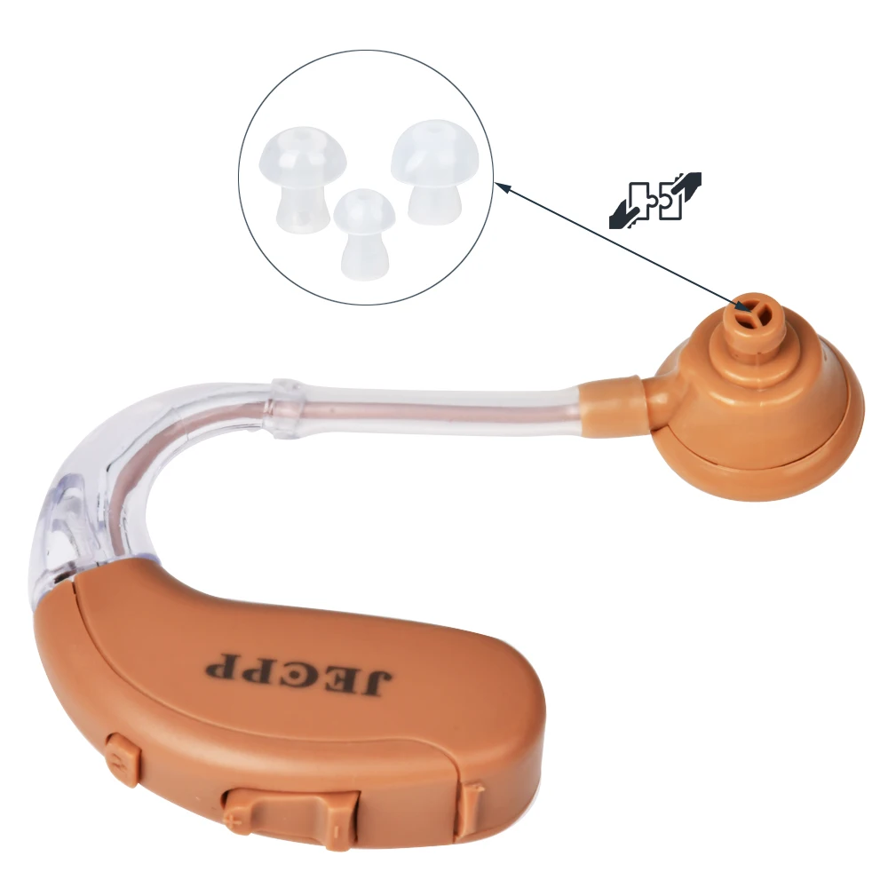 Он включает в себя 3 штуки затычек для ушей, 1 кнопочный аккумулятор, чистящую щетку и чехол для хранения, используется для длительного использования.