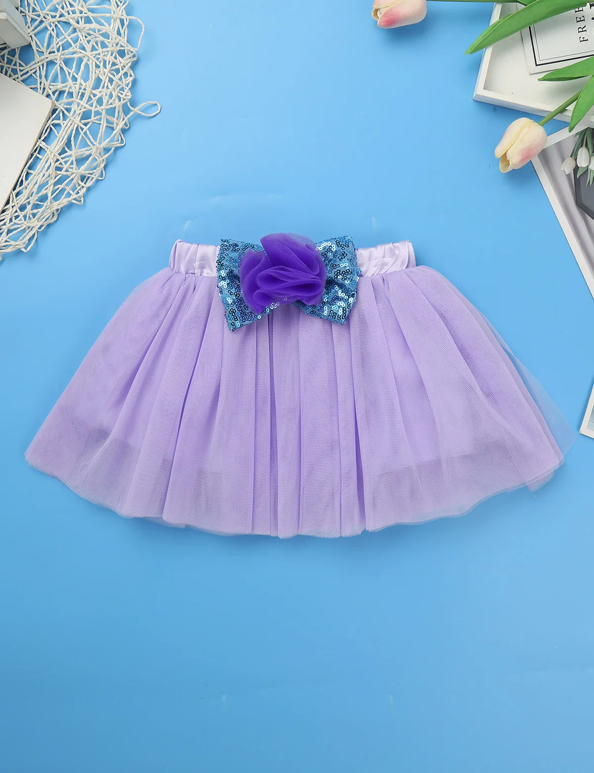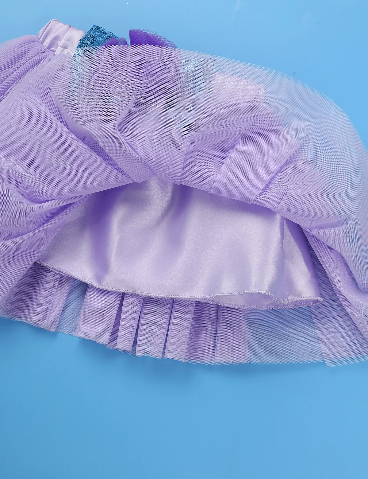 Повязкой на голову в тон, гетры украшены оборками, 4-х слойная юбка-пачка, топ 3 сетчатых слоев, 1 атласную подкладку, Прошитый, расшитые пайетками, на эластичная резинка на талии.