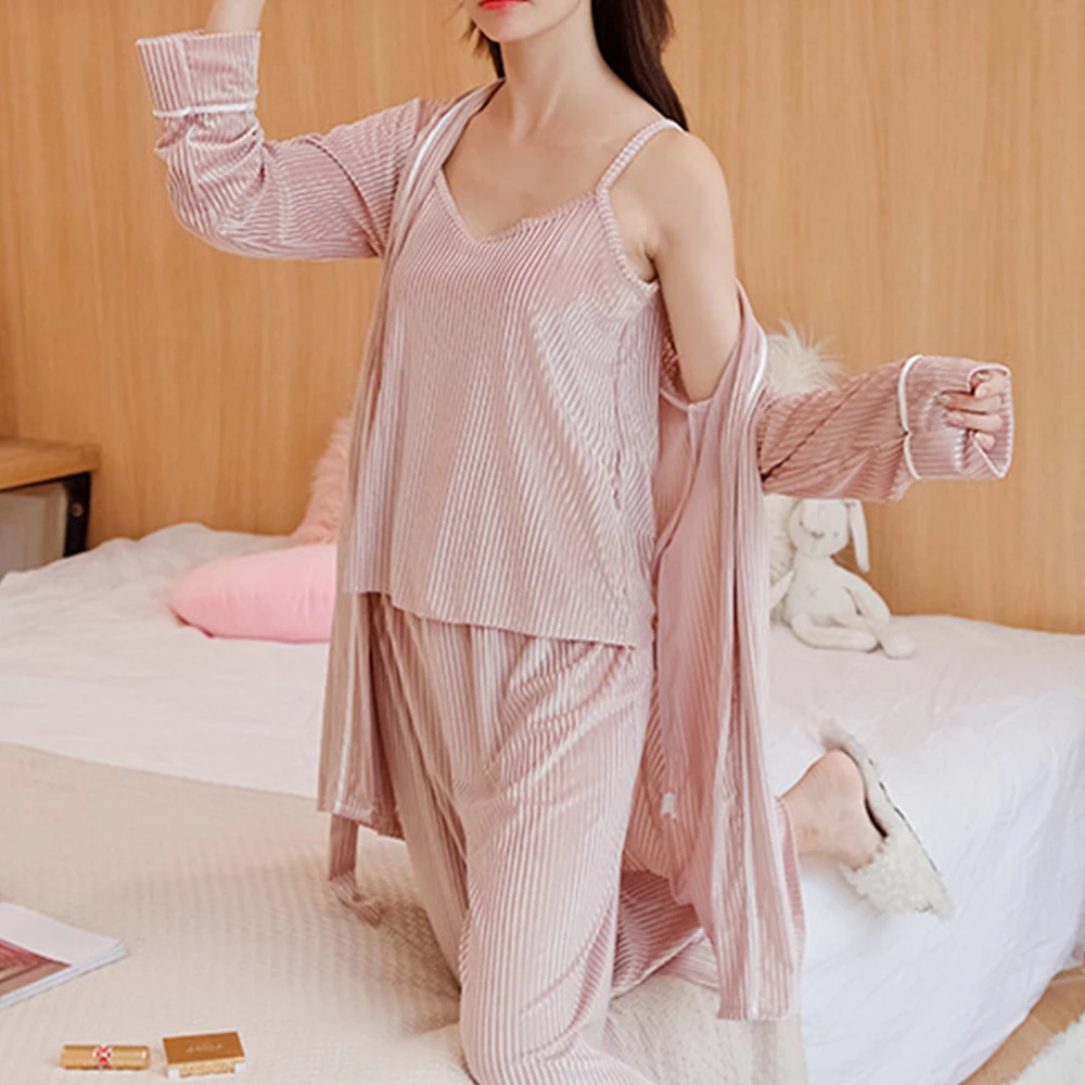 Здравствуйте! Добро пожаловать в наш магазин! Мы поддерживаем дрошиппинг и оптовую продажу, дополнительную скидку и подарок-сюрприз, пожалуйста, свяжитесь со мной! Качество на первом месте и самый лучший сервис. Все покупатели — наши друзья. Информация о продукте выглядит следующим образом: Модный дизайн; Новинка 100% года; Высокое качество Материал: шелк, полиэстер Цвет: синий/розовый/зеленый Тип рисунка: в полоску Ткань: тканые Форма воротника: с круглым вырезом Стиль: Повседневный Товар: женская пижама из бархата; Комплект из трех предметов Размер: M, L, XL Посылка включает в себя: 1 Женский пижамный комплект (топ + брюки + халат) Примечание: 1. Замеры сделаны вручную, поэтому возможны отклонения на 1-2 см. 2. Обратите внимание, что небольшая разница в цвете должна быть приемлемой из-за освещения и экрана. 3. Наша Пижама азиатского размера, она на 1 размер меньше европейского размера. Пожалуйста, внимательно выбирайте размер в соответствии с таблицей размеров. Мы предлагаем вам выбрать на 1 размер больше, чем обычно. Если вы не уверены в размере или сомневаетесь, пожалуйста, отправьте мне сообщение.