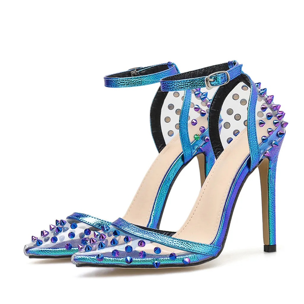 Женские туфли на высоком каблуке; Модные прозрачные туфли на высоком каблуке с пряжкой