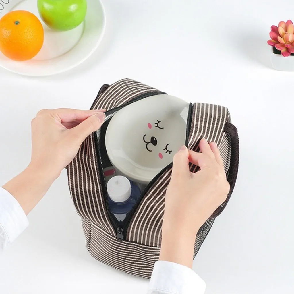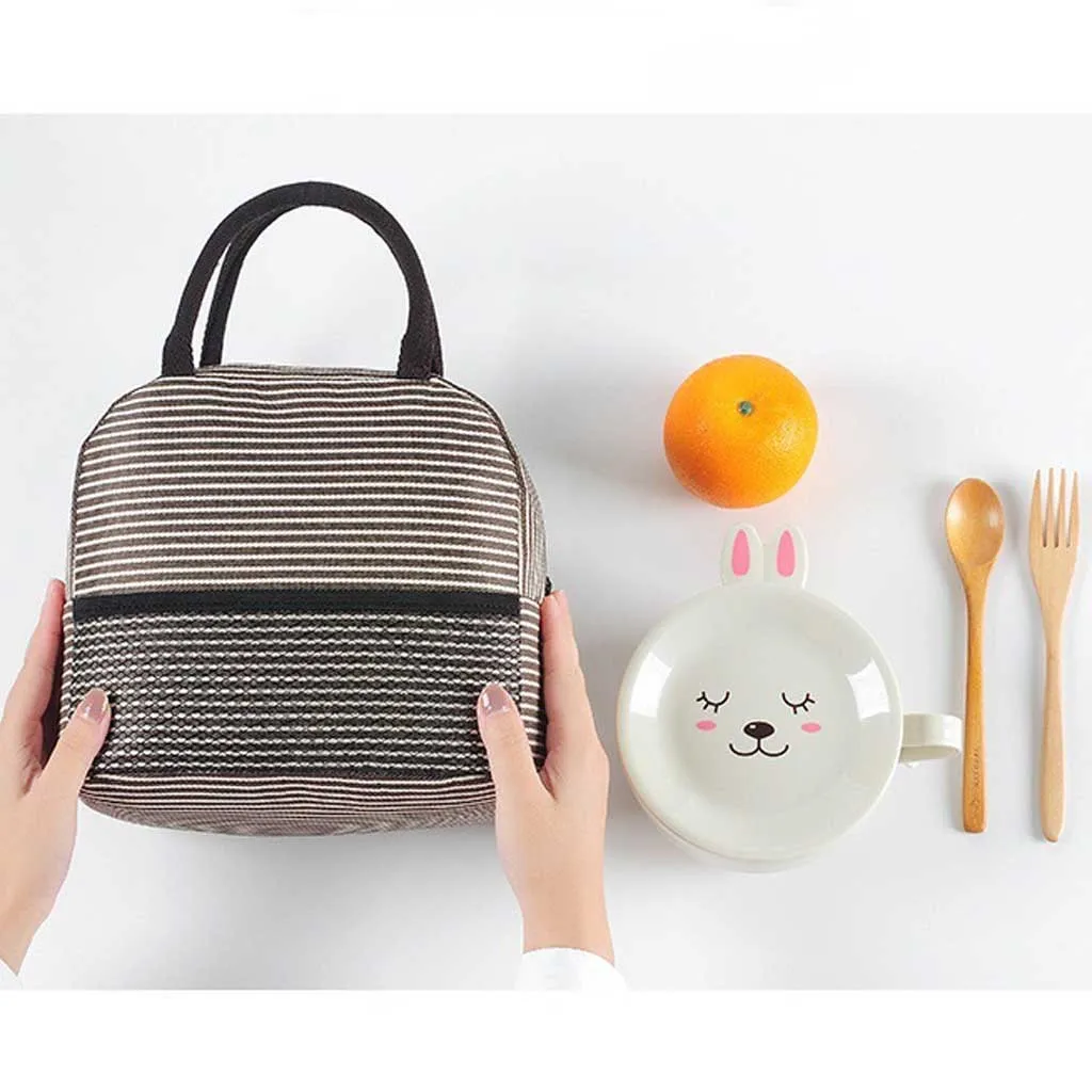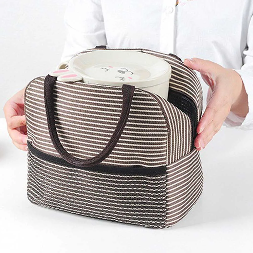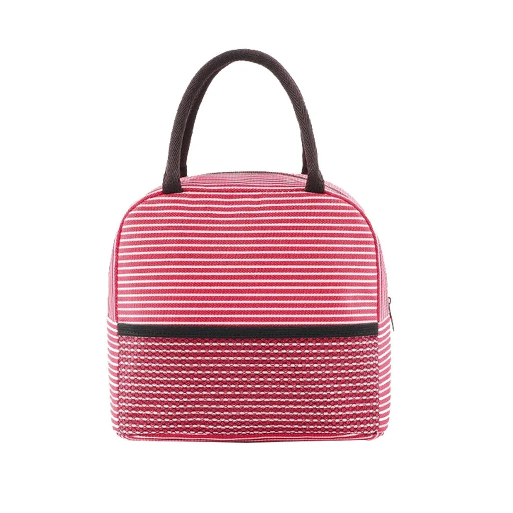 Портативная полосатая Термосумка для обедов, холст, контейнер для еды, сумка для хранения обеда, сумки