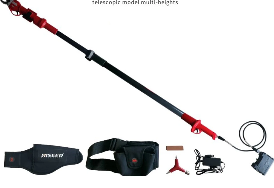 Новейшие телескопические электрические ножницы, Длина между 1,5 м-2 м является необязательным Набор длинных полюсов может снять головку секатора и превратить ее в ручные ножницы Ручной секатор может добавить длинную руку для телескопического секатора Удлинение телескопическое и может быть зафиксировано на желаемой высоте. И длинный полюс уже установлен и не нужно устанавливать самостоятельно. Просто откройте установочную коробку, подключите питание к секатору Ручной секатор В комплект входит ПУ коробка, секатор тела, батарея, оболочка, инструменты, зарядное устройство, рюкзак и масло камень Набор удлинительных ножниц включает в себя ПУ коробка, секатор тела, расширение, батарея, оболочка, инструменты, зарядное устройство, рюкзак и масло камень