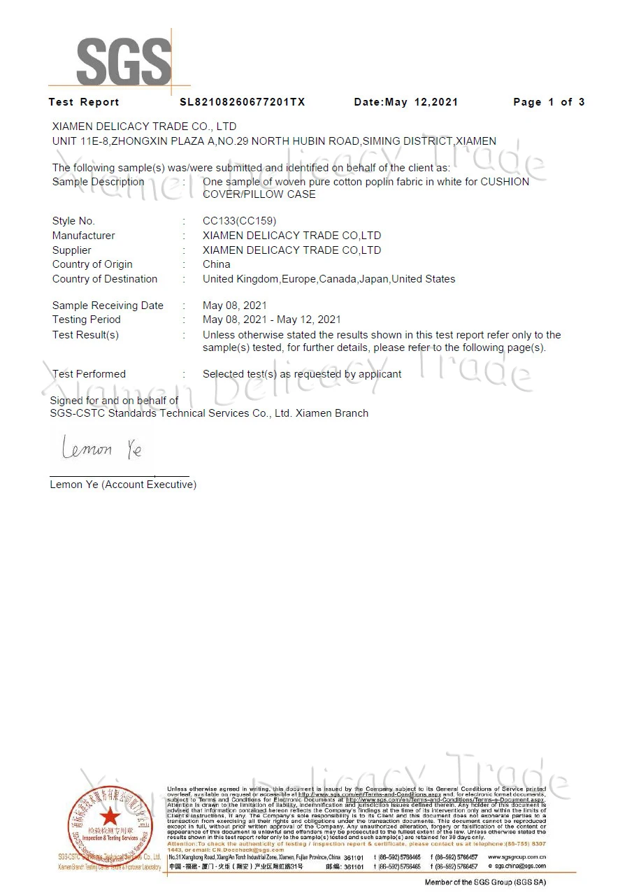 Хлопок: 100% ФОРМАЛЬДЕГИД: не обнаружен Значение pH: 5,9