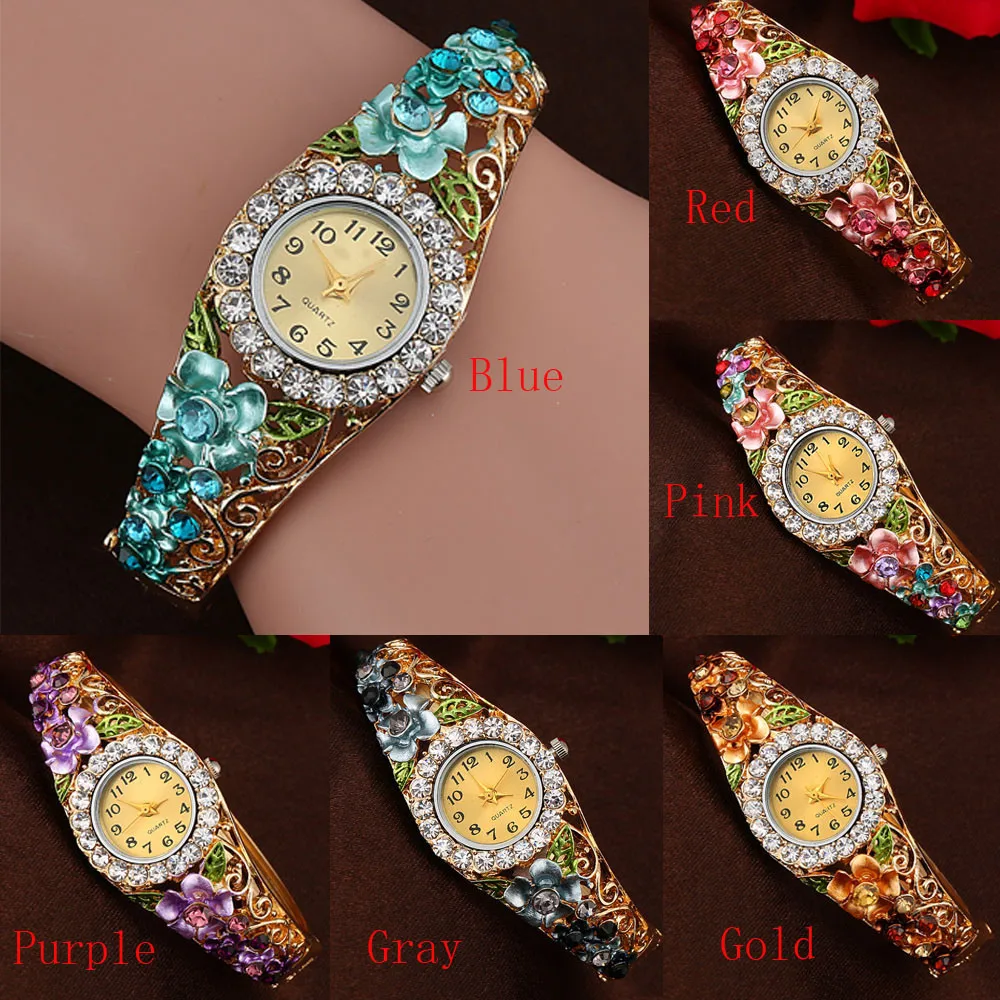 1 шт. женские кварцевые роскошные Браслет с цветами из кристаллов (без розничной упаковки)