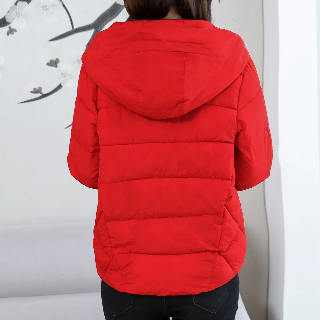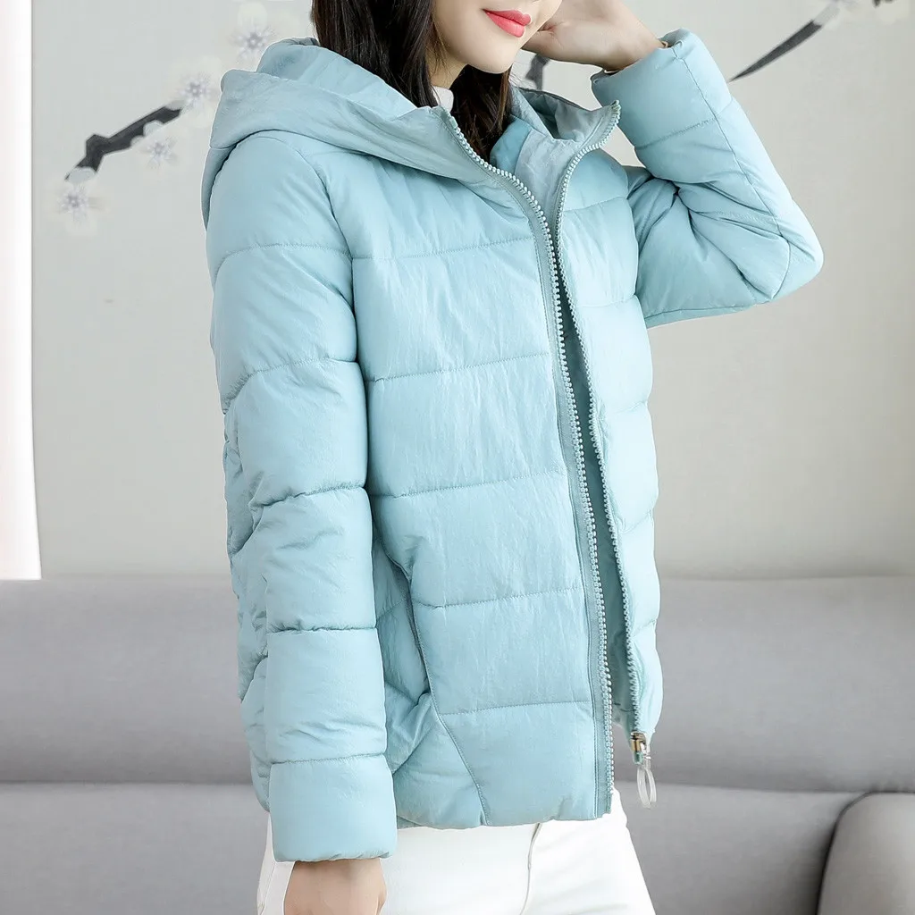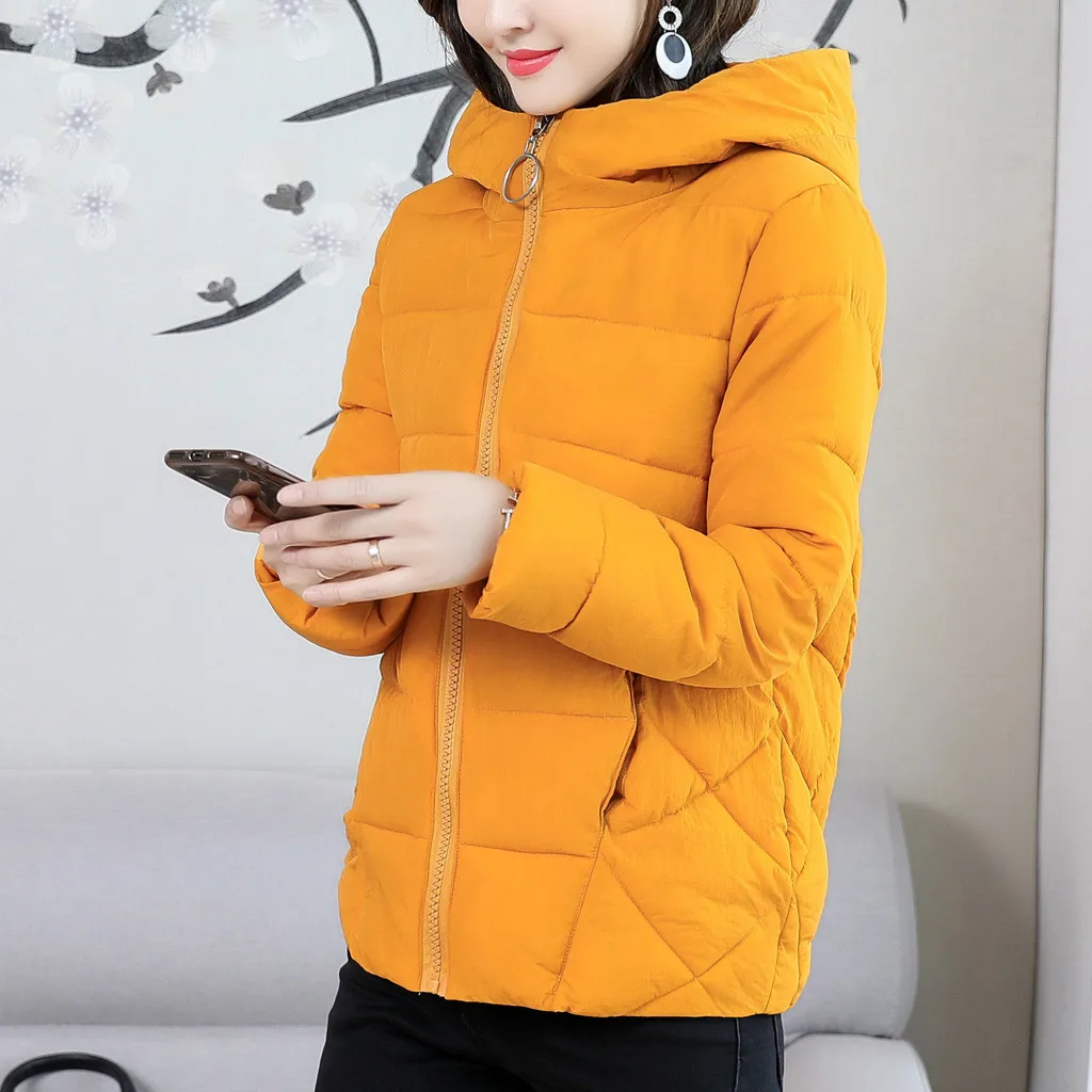 Модная женская зимняя теплая хлопковая зимняя куртка с капюшоном однотонное пальто с длинными рукавами