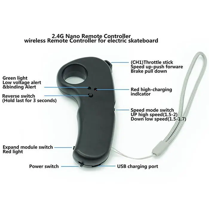 Материал: Пластик Цвет: черный Размер: 120x60x20 мм/4,7x2,3x0,78 дюйма Количество: купальное полотенце, 1 шт Особенности: Поддержка 2 режима скорости: высокая скорость (1,5-2) и низкая скорость (1,5-1,7) Сигнальная лампа: Зеленый: низкий Пробник напряжения и подключение оповещение о потере (оповещение о переплете) и красный: индикация высокой зарядки Расширенный переключатель модуля: Второй канал для добавления света или динамика (пока не поддерживается) Обратный Переключатель: изменить направление вперед и назад Каждый раз, когда питание на пульте дистанционного управления, он автоматически будет соответствовать вашему скейтборду. Посылка Содержание: 1 х Электрический скейтборд пульт дистанционного управления Примечание: Из-за разницы между различными мониторами изображение может не отражать фактический цвет изделия.