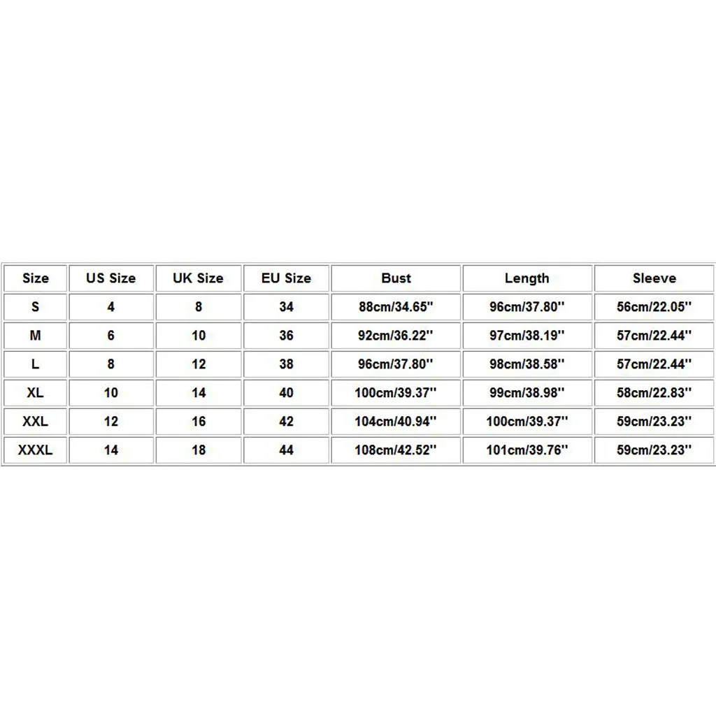 Размер Нам Размеры UK Размеры ЕС Размеры Обхват груди Длина Рукава S 4 8 34 88 см/34,65" 96 см/37,80'' 56 см/22,05'' М 6 10 36 92 см/36,22'' 97 см/38,19'' 57 см/22,44'' L 8 12 38 96 см/37,80'' 98 см/38,58'' 57 см/22,44'' XL 10 14 40 100 см/39,37'' 99 см/38,98'' 58 см/22,83'' XXL 12 16 42 104 см/40,94'' 100 см/39,37'' 59 см/23,23'' XХХL 14 18 44 108 см/42,52'' 101 см/39,76'' 59 см/23,23''