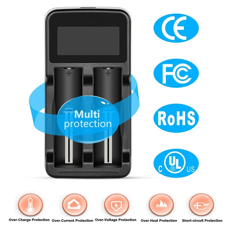 Совместимость для батарей Li-Ion (литий-ионных батарей 18650 18490 18350 17670 17500 16340(RCR123), 14500 никель-металл-гидридный аккумулятор с никель-кадмиевый аккумулятор AA AAA батареи и 3,7 V литиевая батарея и так далее;