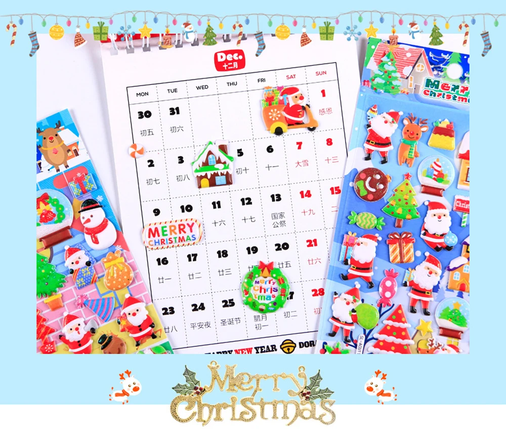 Новинка креативная наклейка «сделай сам» в виде Санта-Клауса, симпатичный лось, 3D стерео, забавная мультяшная наклейка из пенопласта, игрушка для детей, рождественский подарок