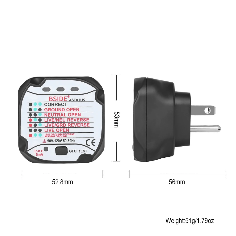 Простота в использовании: Он имеет большую и удобную таблицу ошибок. Включает в себя 7 различных узоров для чтения: правильный, открытый, нейтральный, живой/NEU обратный, живой/GRD обратный, живой открытый, живой Земли обратный недостающий земли. Обеспечивает четкую индикацию того, что вы можете быстро понять и использовать его.