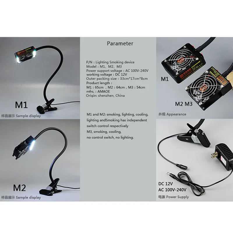 Светодиодный вытяжной вентилятор Amaoe, паяльник для дыма, сварочное устройство для курения, инструмент для ремонта телефона, инструмент для ремонта дыма 220 В 110 В
