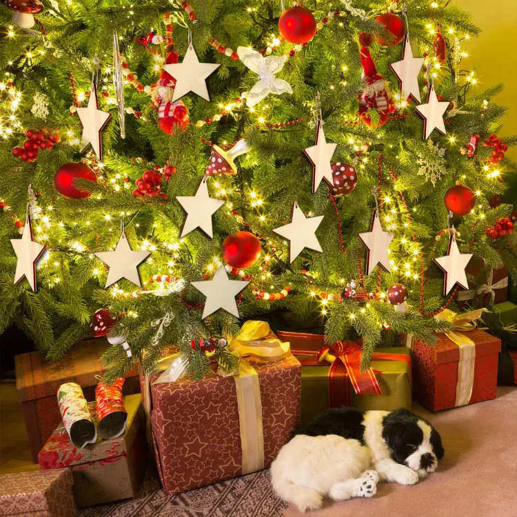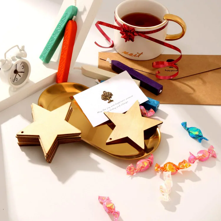 60 шт., украшения из натурального дерева с вырезами в форме звезды и 60 шт., вечерние украшения для дома на Рождество