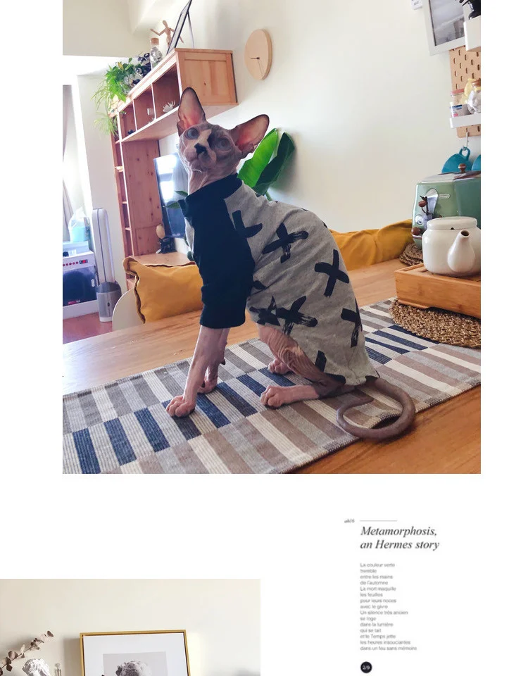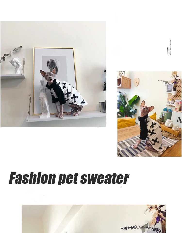 Кожа Сфинкса очень хрупкая. Вся одежда, которая нуждается в мягкой и удобной одежде, теплая или защищенная от солнца, которая может лучше защитить его здоровье.