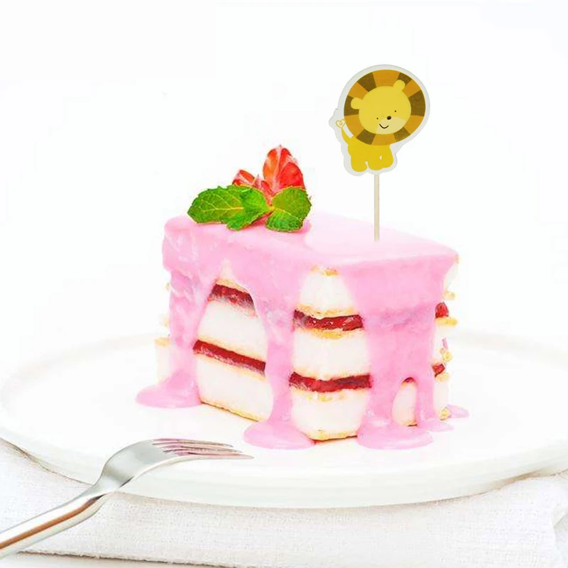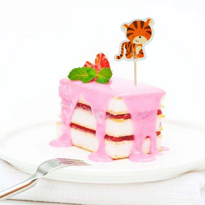 24 шт джунглей животных Слон/Лев/тигр кекс топперы с палками украшения мультфильм вставки мальчик выступает кекс топперы