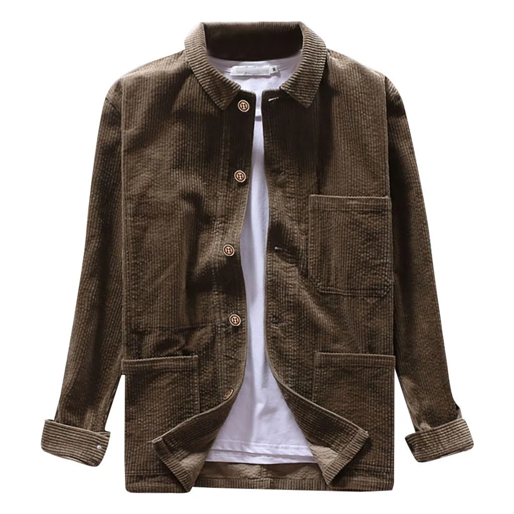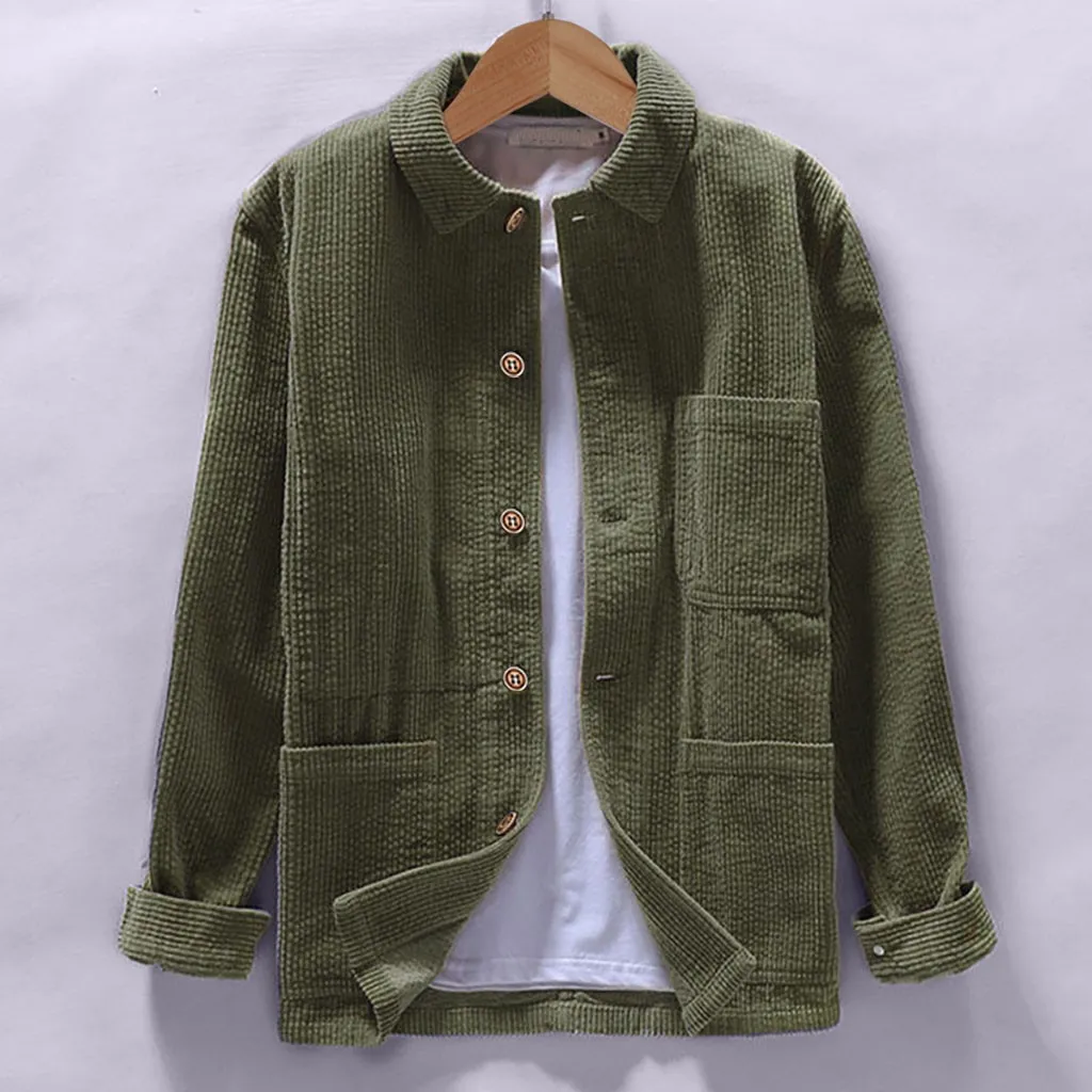 Мужские осенние модные рубашки, повседневные однотонные топы с длинными рукавами, Вельветовая Повседневная Блузка