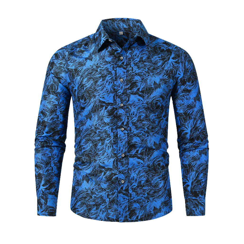Мужская осенне-зимняя повседневная тонкая рубашка с длинными рукавами и принтом, Пляжная блуза