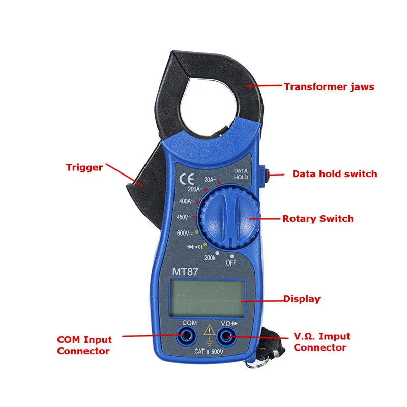 MT-87 ЖК-дисплей цифровой мультиметр Ампер зажим AC/DC тестер напряжения измеритель тока