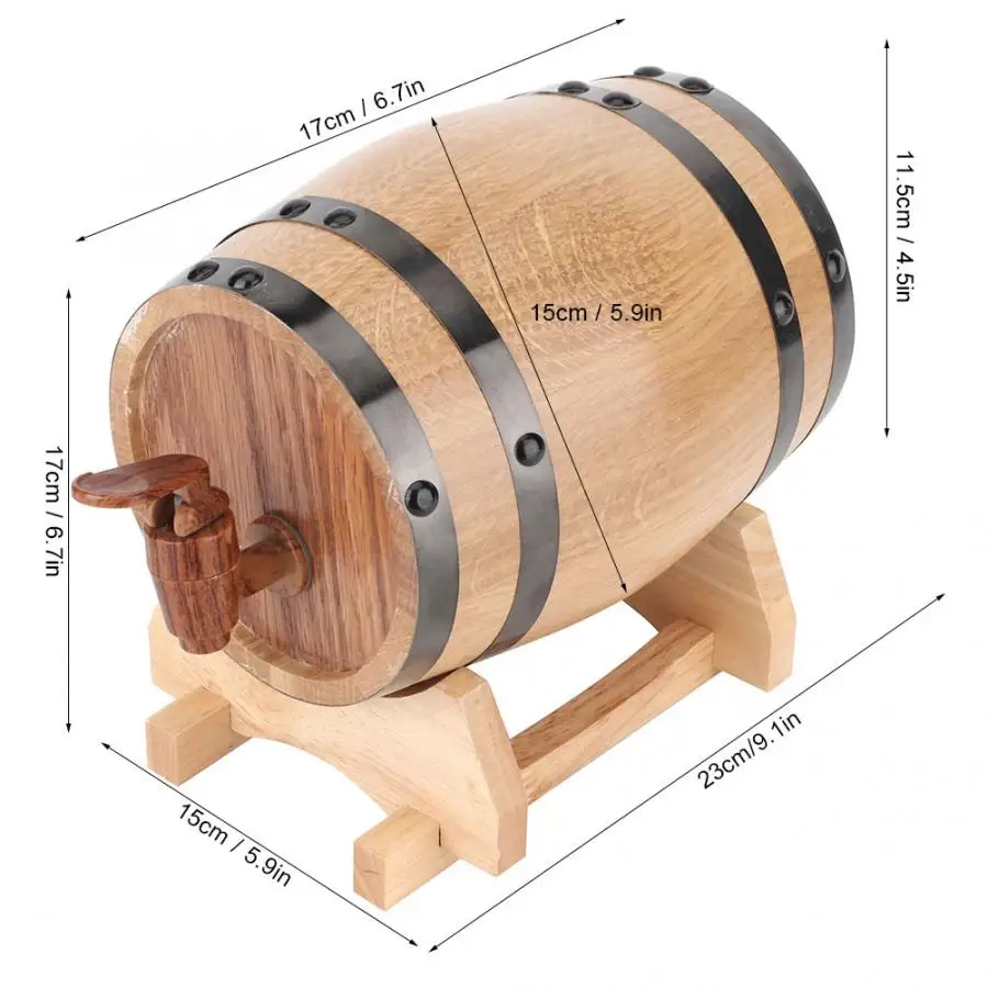 2. Этот винный бочонок изготовлен из натурального дуба, сохраняя текстуру изделий из дерева, прочный и долговечный.