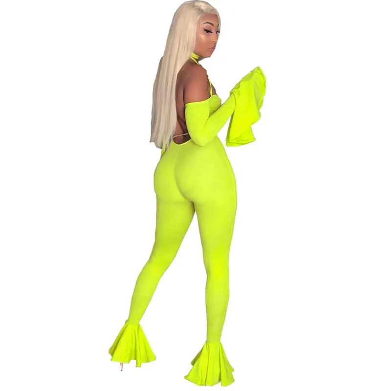 Женский сексуальный комбинезон с открытой спиной и грибковыми рукавами