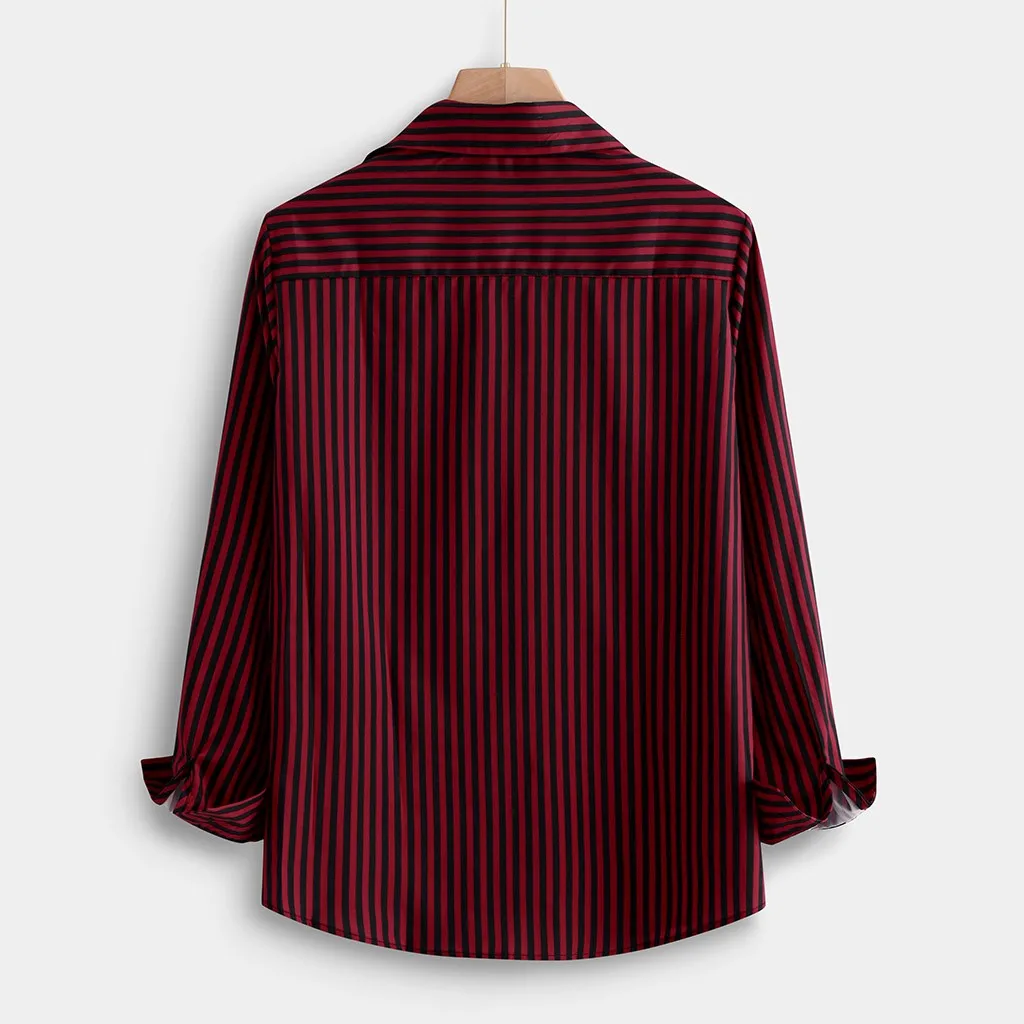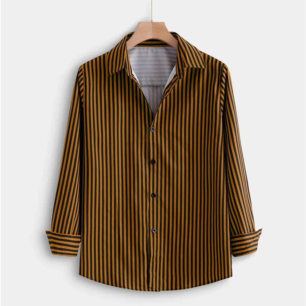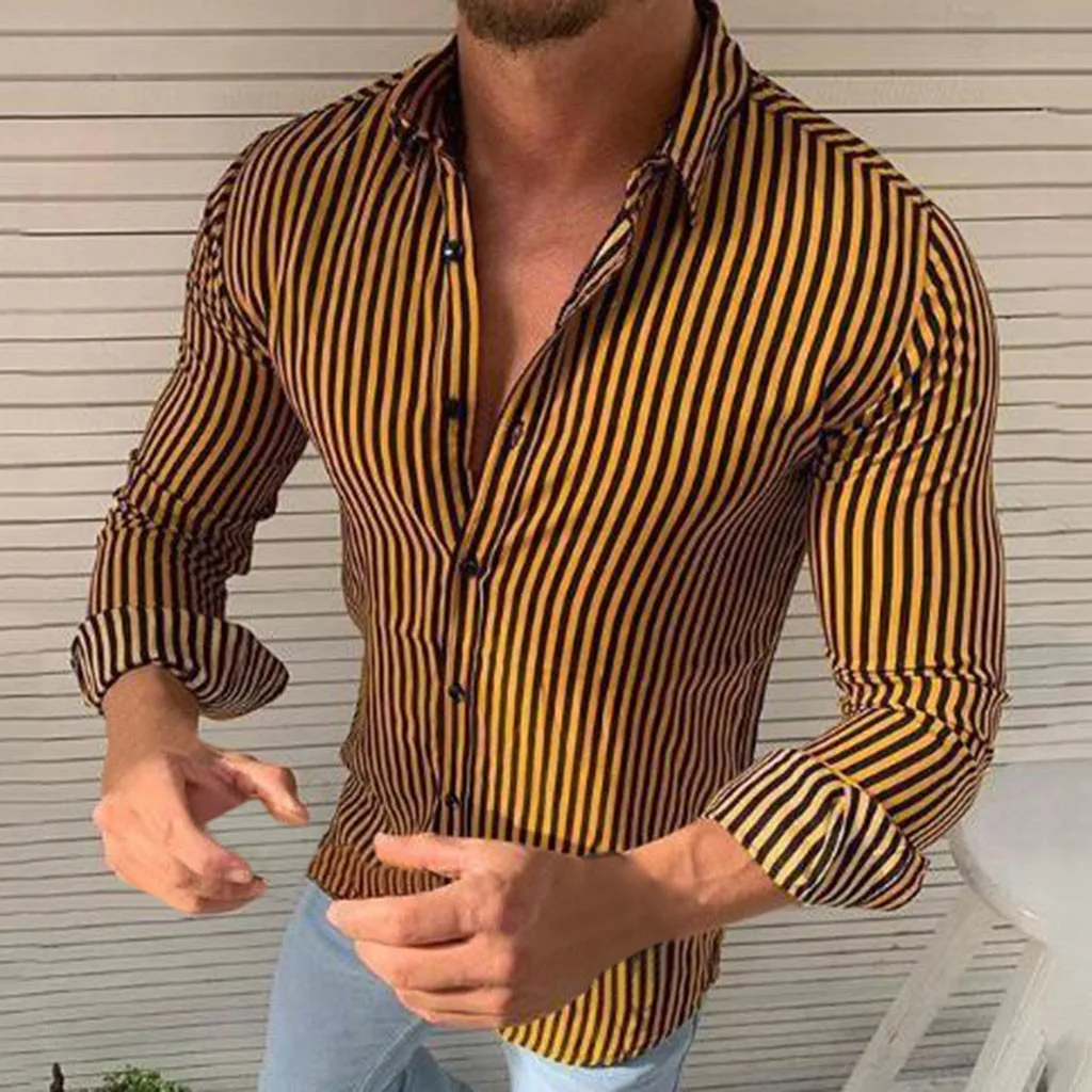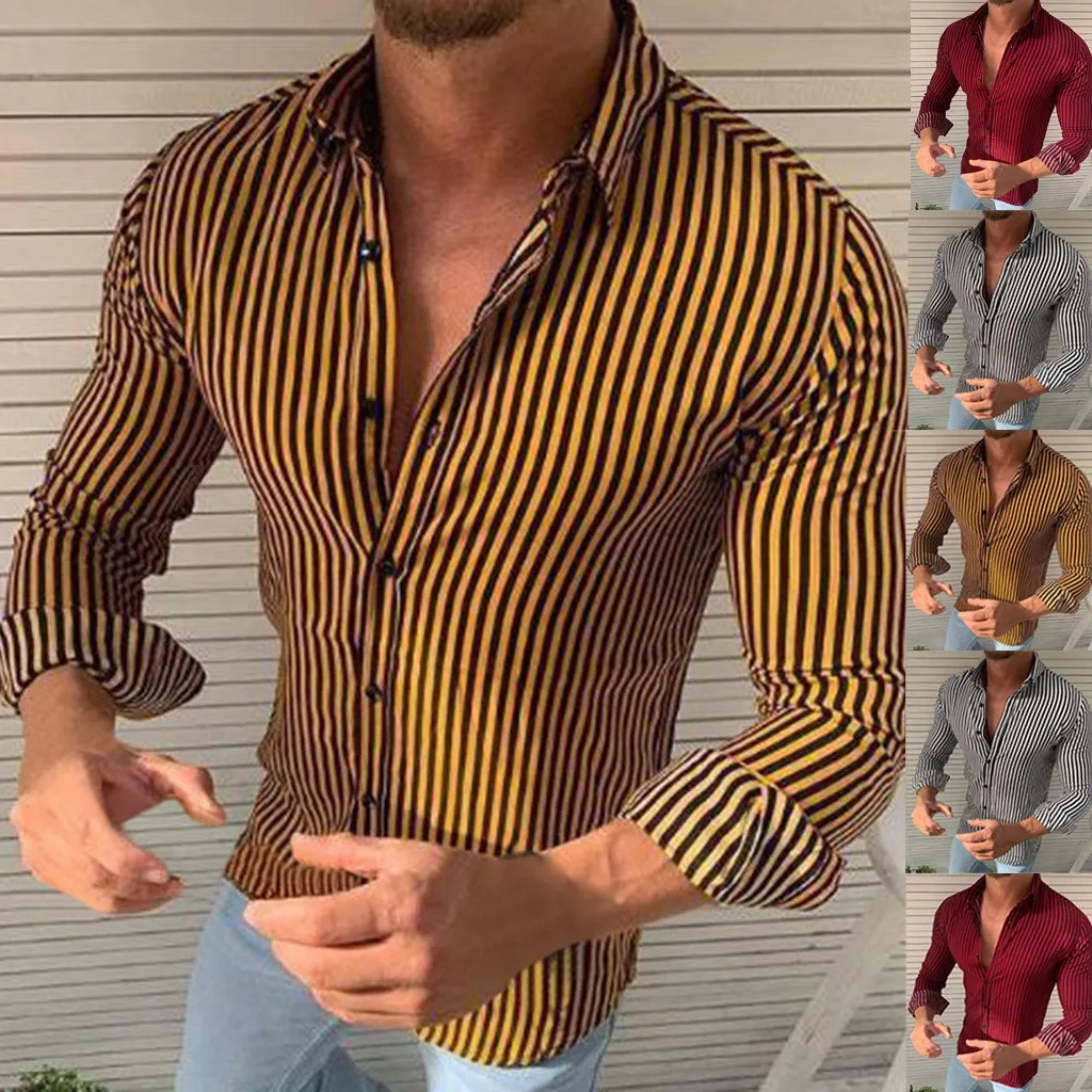 Модная мужская повседневная полосатая тонкая рубашка с длинным рукавом, рубашка, блузка, топы