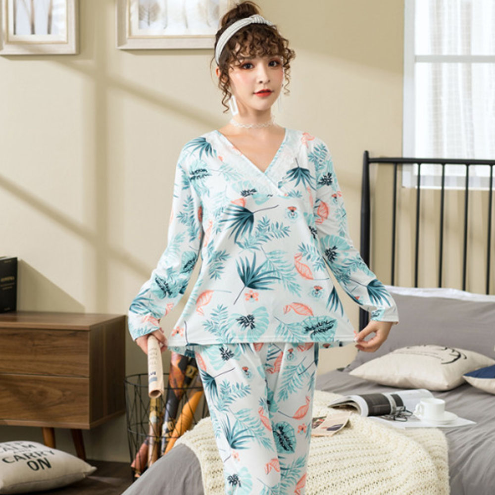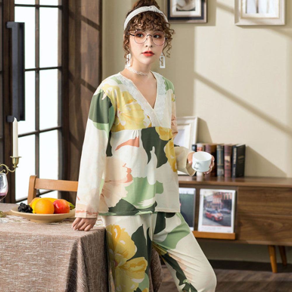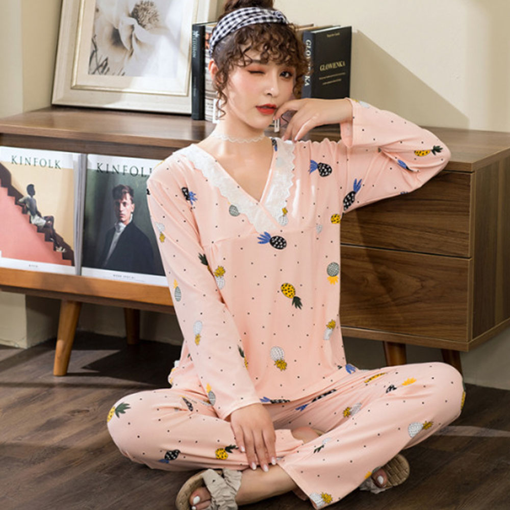 Изделие: кружевной пижамный комплект с длинными рукавами и v-образным вырезом