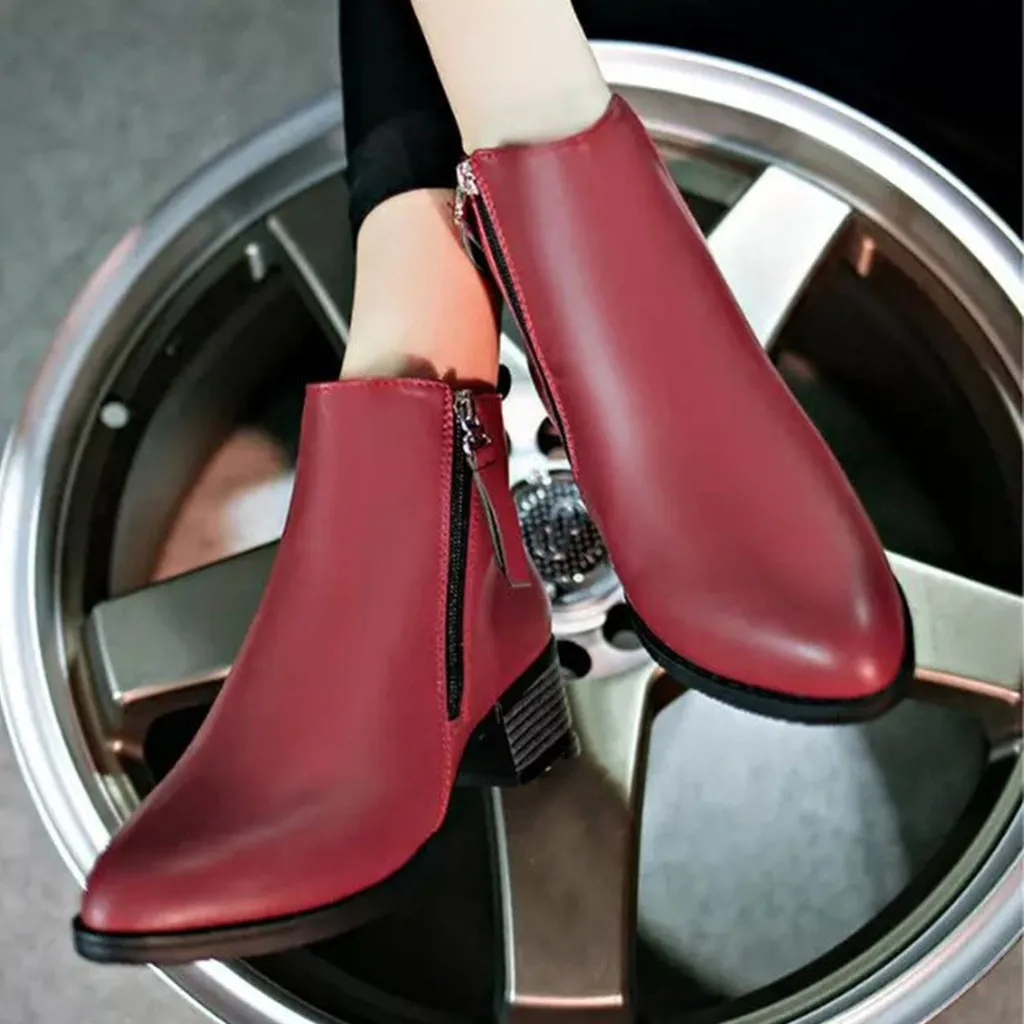 Модные однотонные ботинки на молнии с острым носком, винтажные женские ботинки на квадратном каблуке