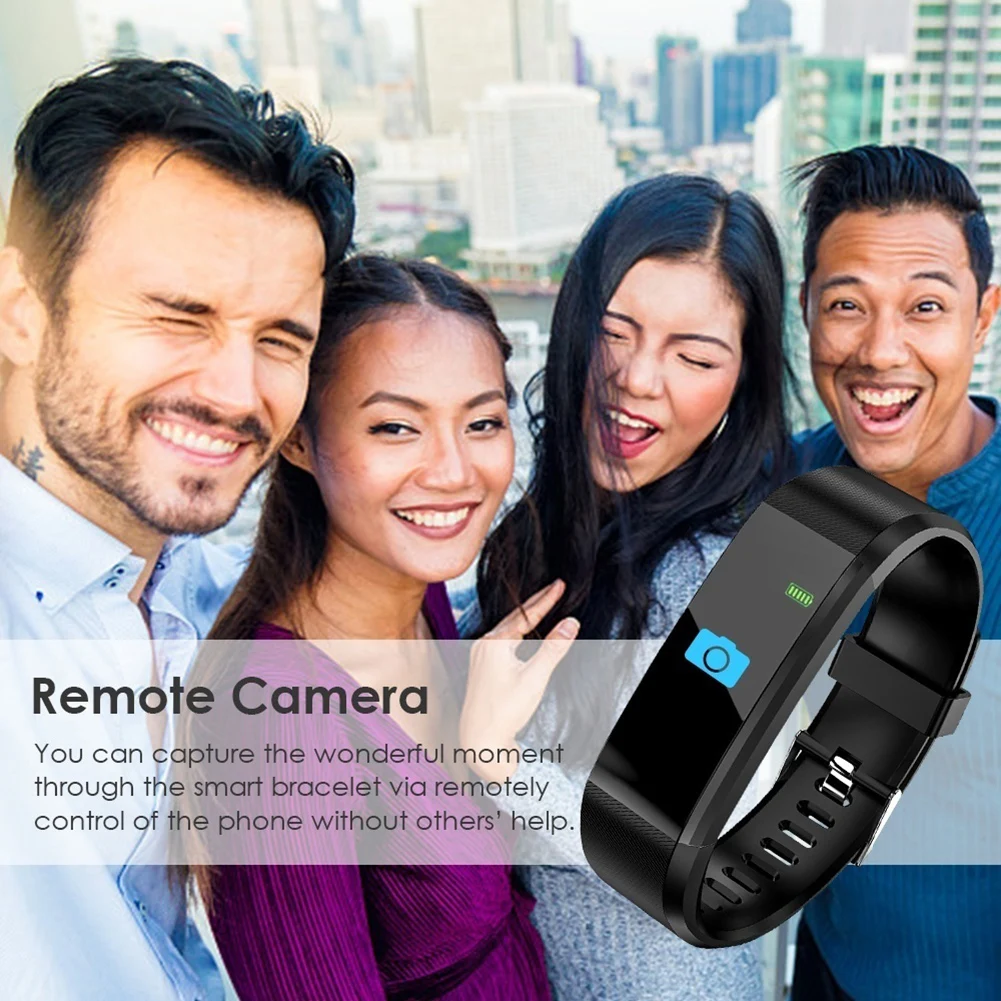 Functions: Heart Rate Monitor, Calories Count, Pedometer, Sleep Monitor, Call/Message Reminder, Alarm Clock, Anti-Lost, Remote Camera, RTC Display, etc.
