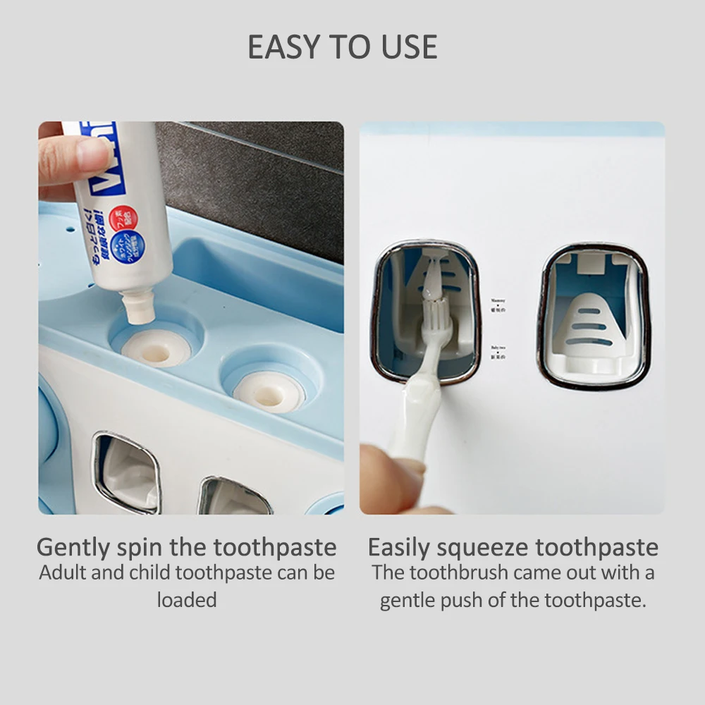 Настенный и автоматический штранг-прессования зубной пасты: он не имеет следов и не повредит стену. Этот держатель для зубной щетки также оснащен автоматической экструзионной конструкцией зубной пасты, которая экономит время.