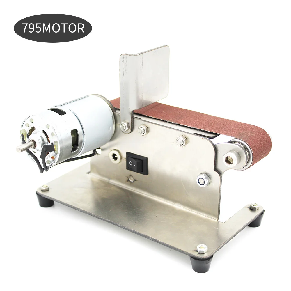 Это многофункциональный ленточный шлифовальный станок, мини портативный, низкий уровень шума, может использоваться для высокоскоростного стального сверла грубого шлифования, кромки лезвия, тонкого шлифования вольфрамовой стали токарного инструмента, полировки корень дерева Бодхи и т. Д., простой в установке и эксплуатации, это домашний инструмент DIY.