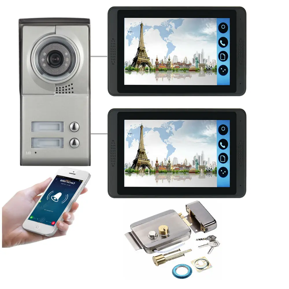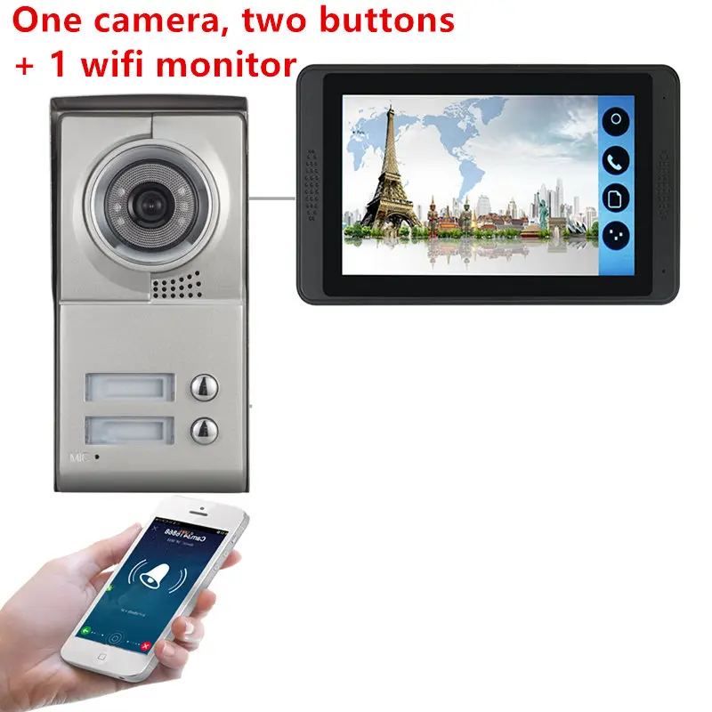 7 дюймов 2 квартиры/семья видео домофон система IR-CUT HD 1000TVL камера дверной Звонок камера с 2 кнопками 2 монитора