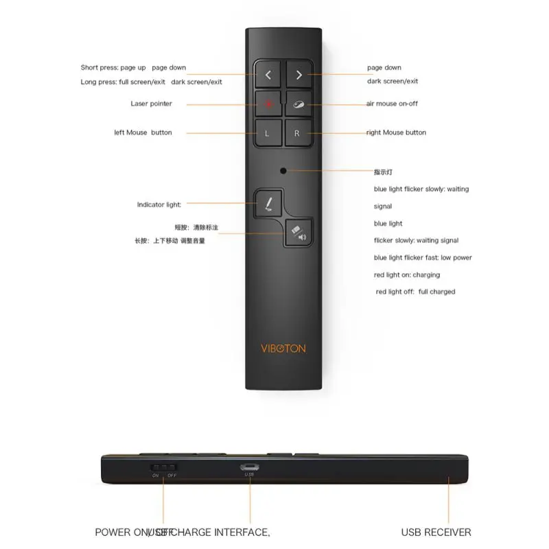 2 в 1 Презентация пультов laserlight ручка Презентация пульты Laserlight ручка 2,4 Ghz RF беспроводной Презентер PPT Ручка управления