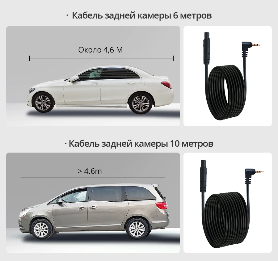Есть 2 длины задней камеры (до около 10 метров) можно выбрать, подходит для автомобилей различной длины. Пожалуйста, выберите заднюю камеру в соответствии с длиной вашего автомобиля.