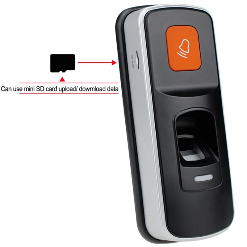 Made of ABS industrial plastic, hard plasticized, molded to withstand impact and wear. The fully sealed waterproof fingerprint head has a doorbell button for more convenient use. Support 1000 fingerprints and 1000 card capacity.