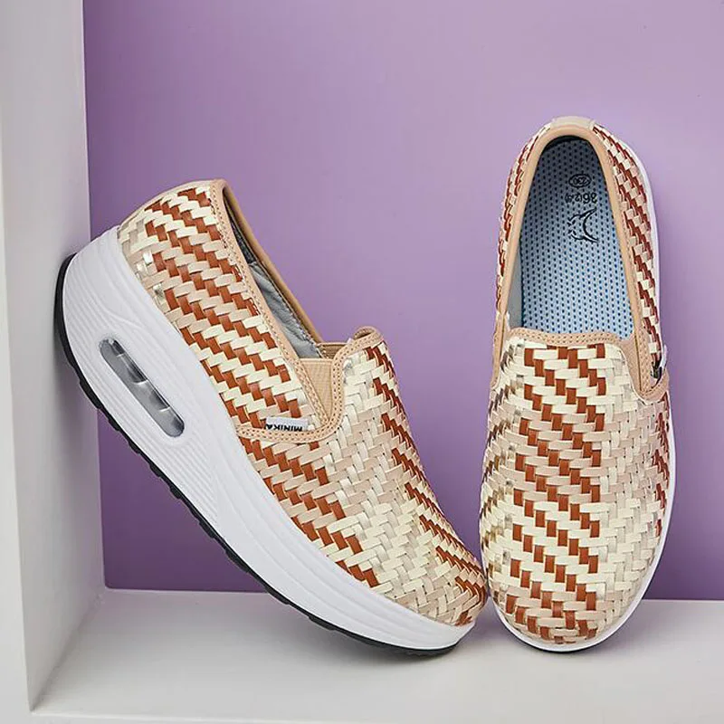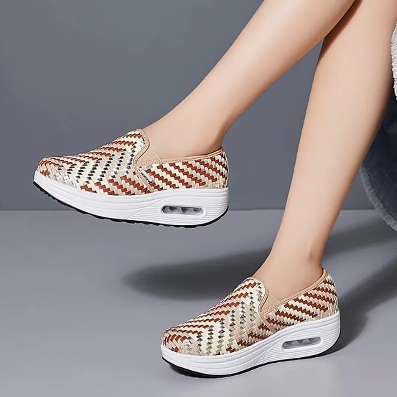 Новинка 2020 года; сезон весна-осень; тканая обувь; женская обувь без застежки; обувь для отдыха на толстой подошве; tenis feminino; Повседневная P-138