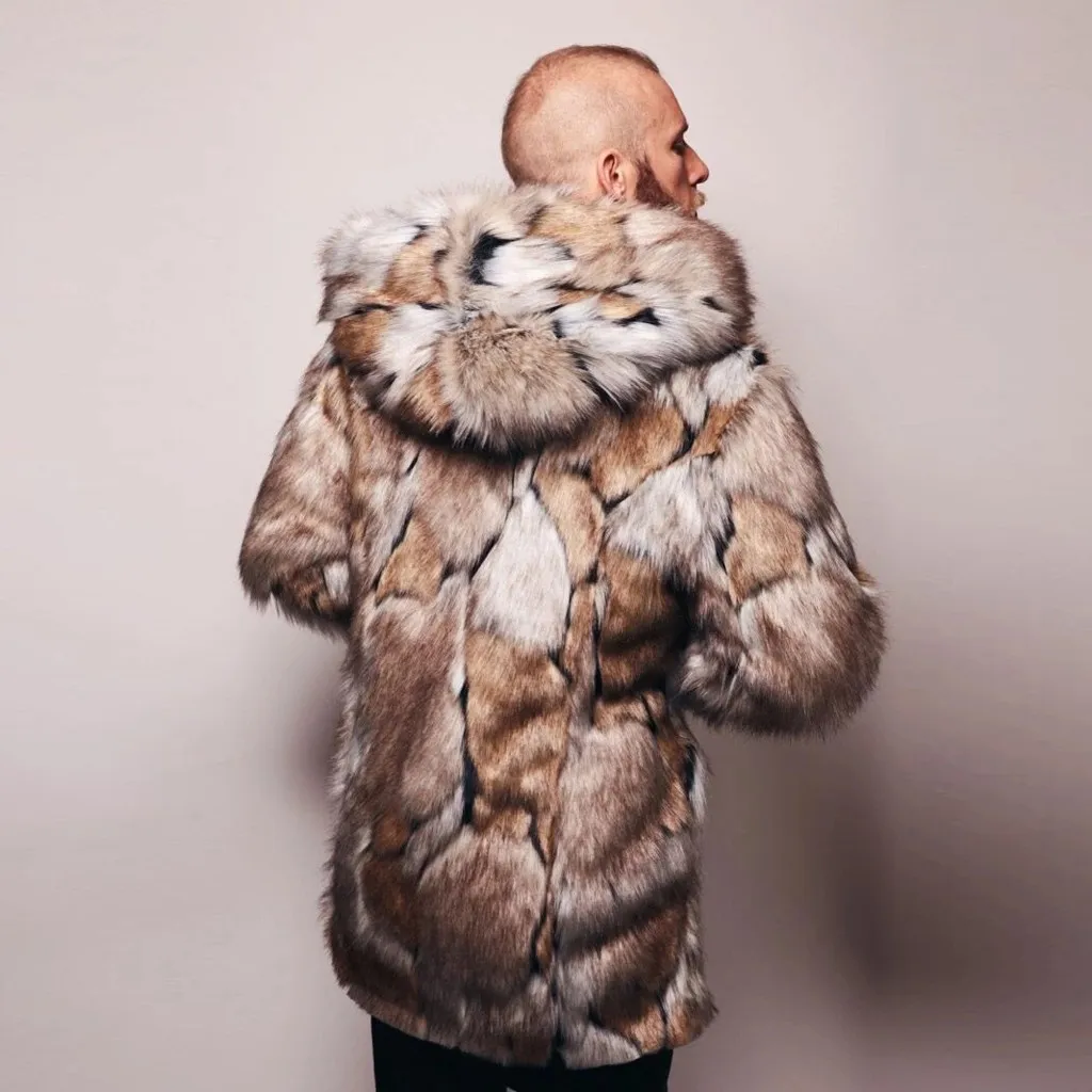 Модная мужская теплая леопардовая Толстая куртка с капюшоном, верхняя одежда из искусственного меха