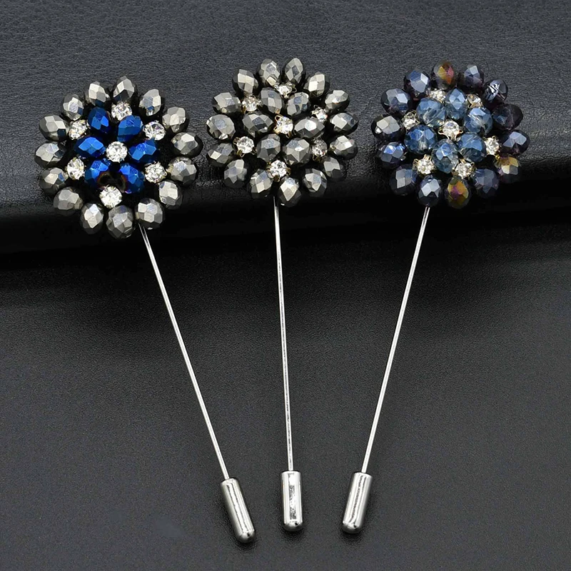Модная мужская брошь с цветочными лацканами, булавка с кристаллами для костюмов, брошь ручной работы