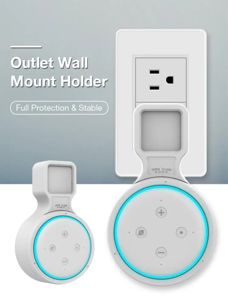 1、【Upgrade Google Wall Mount】Upgrade wall mount designed for Amazon Echo Dot 3rd smart speaker only. This outlet wall holder is designed for protecting Amazon Echo Dot 3rd in bedroom, bathroom, kitchen,garages and office as long as there is a socket.(Device is not included)1*Outlet Wall Mount Holder