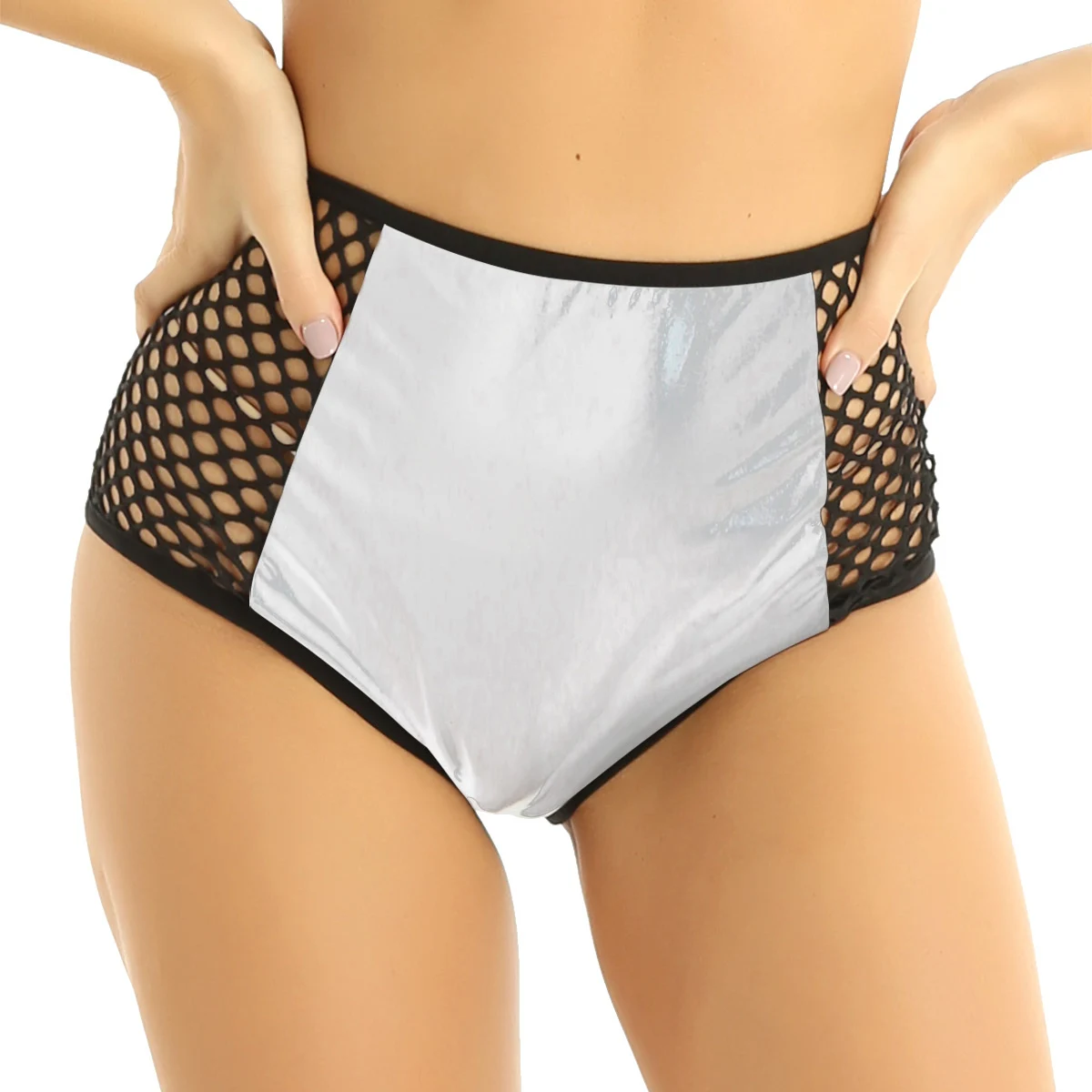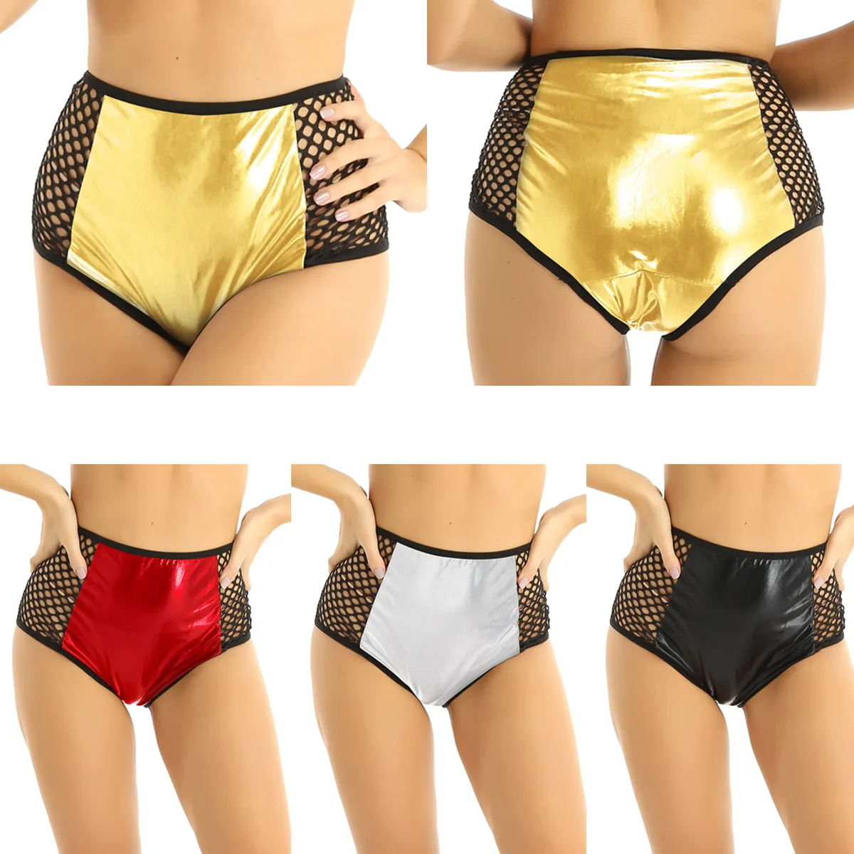 Женское модное блестящее металлическое нижнее белье, трусики с застежкой.