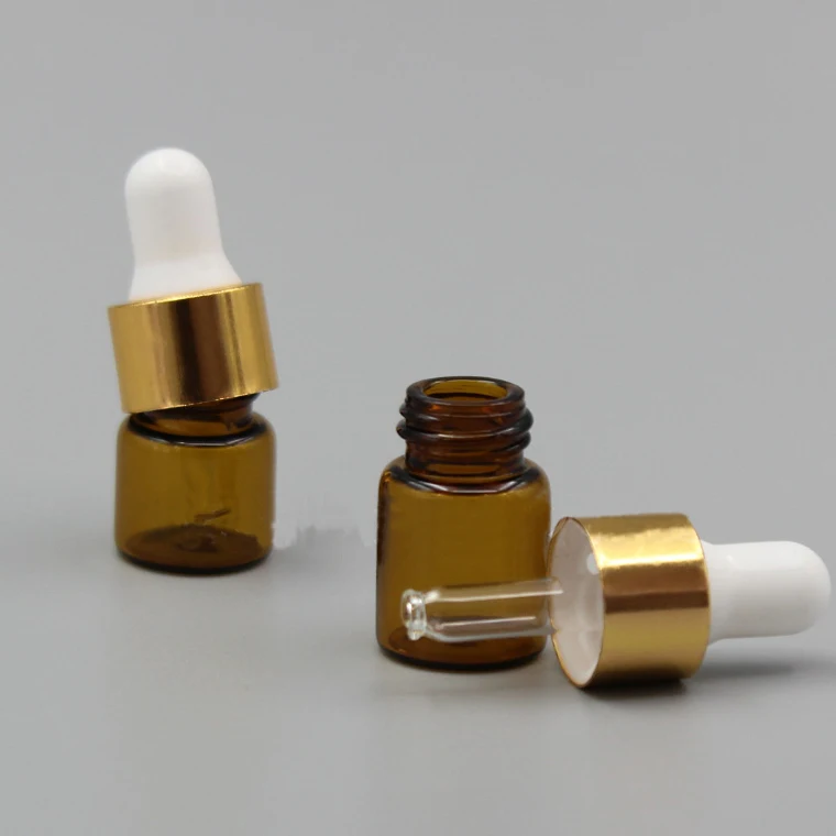 Название продукта и материал: коричневая стеклянная бутылка, капельница, Золотое алюминиевое кольцо, белая резиновая головка