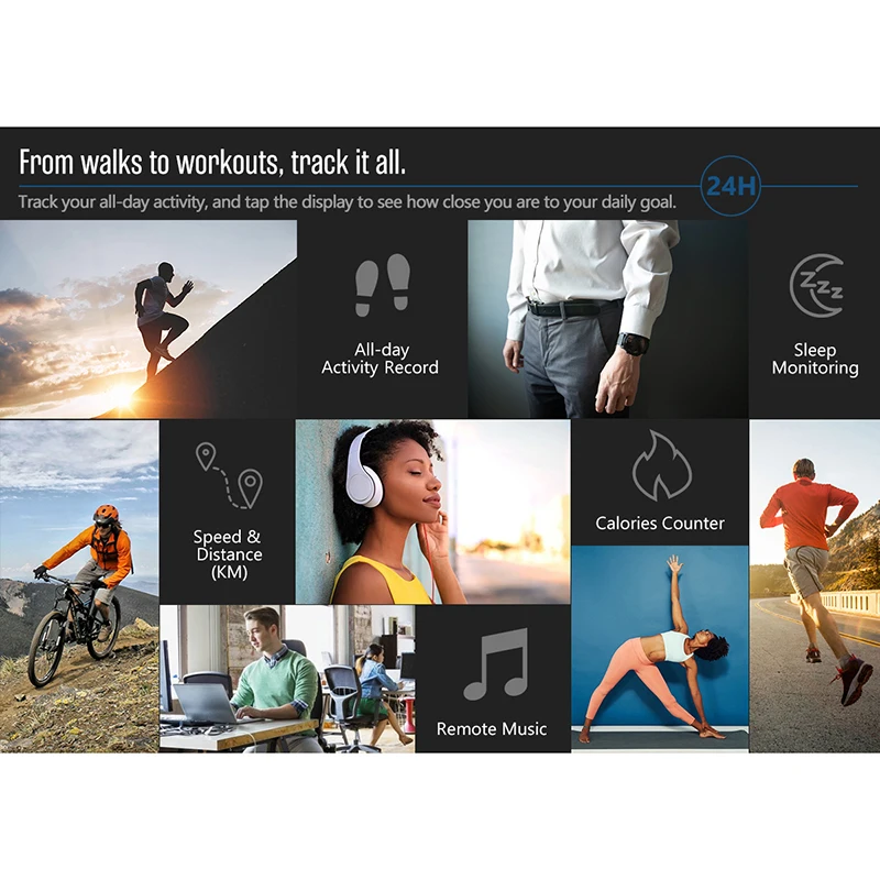 Выдающийся Особенности: 1, алгоритм сердечного ритма GREENCELL, отслеживание активности в течение всего дня, мульти-датчики, мобильные оповещения, шагомер, монитор сна, отслеживание бега, секундомер, погода в режиме реального времени, удаленная музыка, удаленная камера, напоминание о информации/телефоне, поиск мобильного телефона/смарт-браслета, встряхивание снимка, поддержка нескольких языков. 2, тип оповещения: вибрация