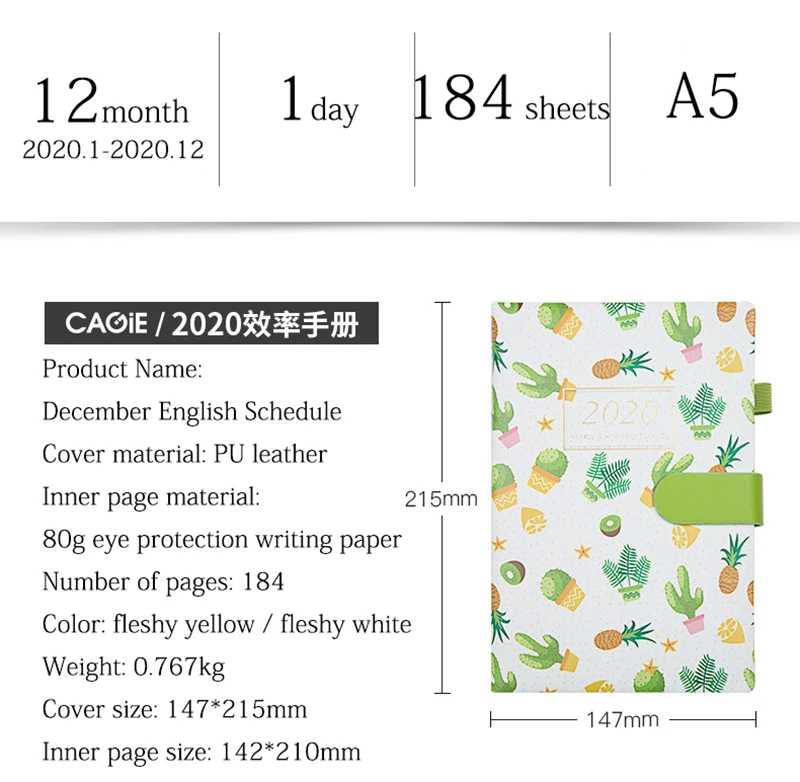 А5 английская версия милой кожаной пули Журнал Планировщик еженедельник дневник путешественник блокнот Мода простота планировщик ежедневник Bujo дневник 2020. Внимание! Этот продукт настроен для международных друзей, полная английская страница, высококлассный план 2020 daliy.