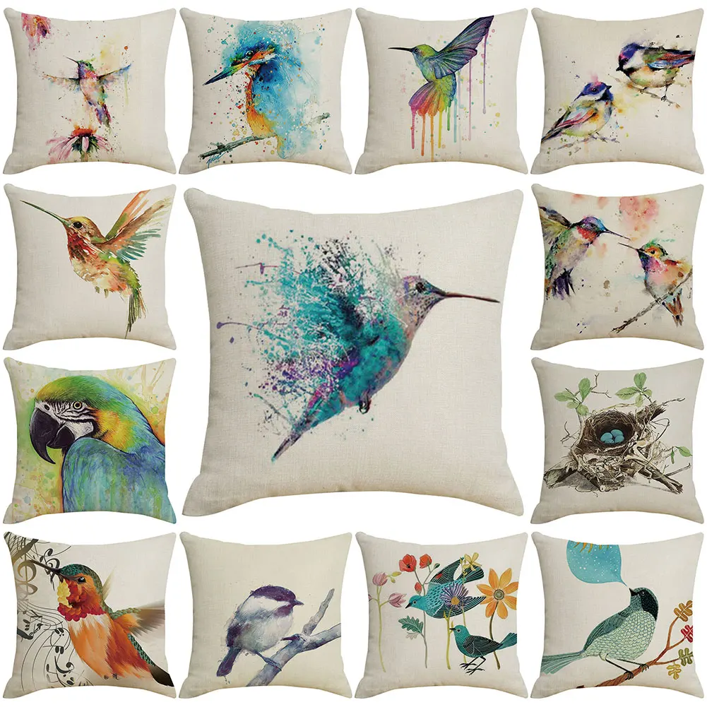 Чехол для подушки Hummingbird, льняная наволочка с цветком, наволочка для дивана и кровати, домашний декор