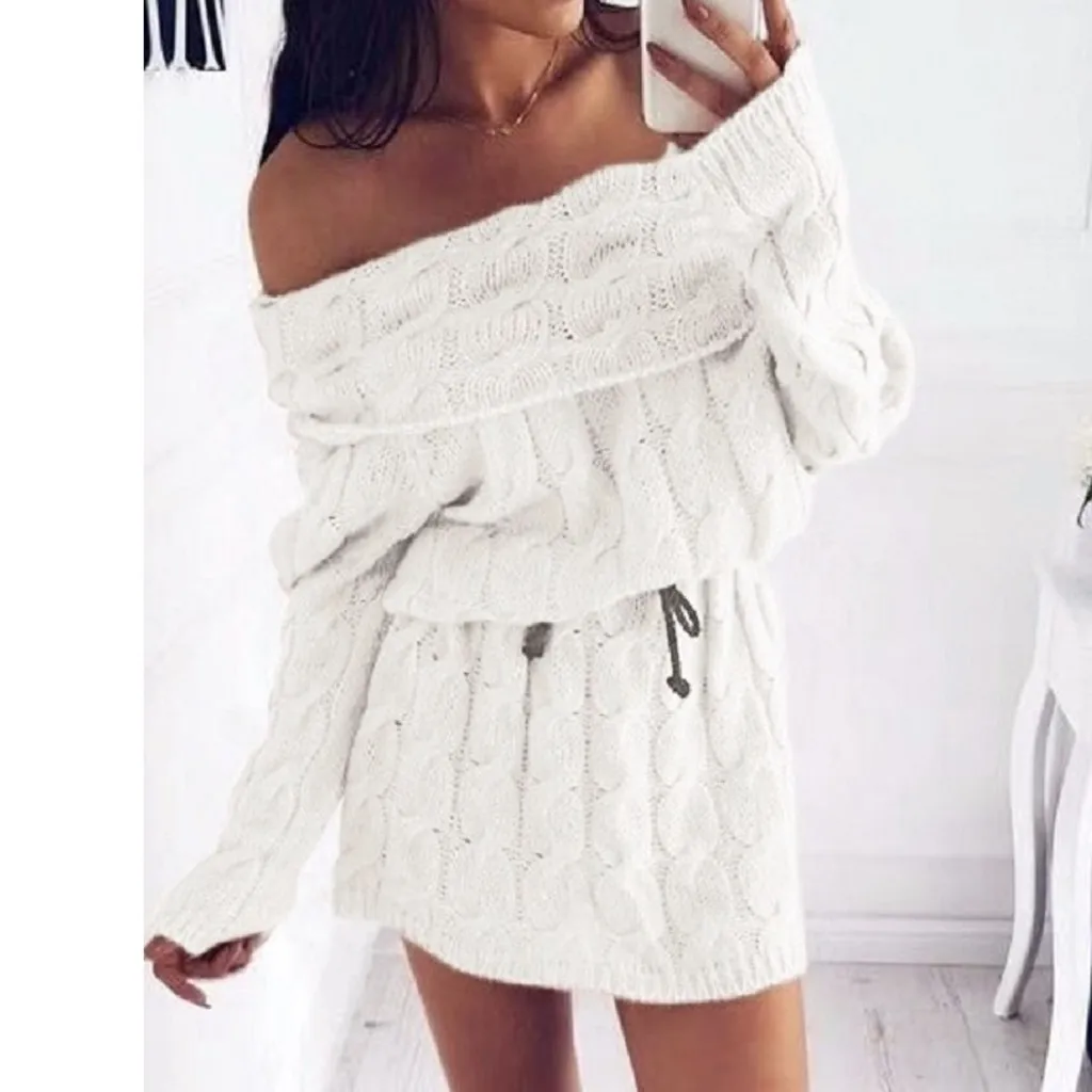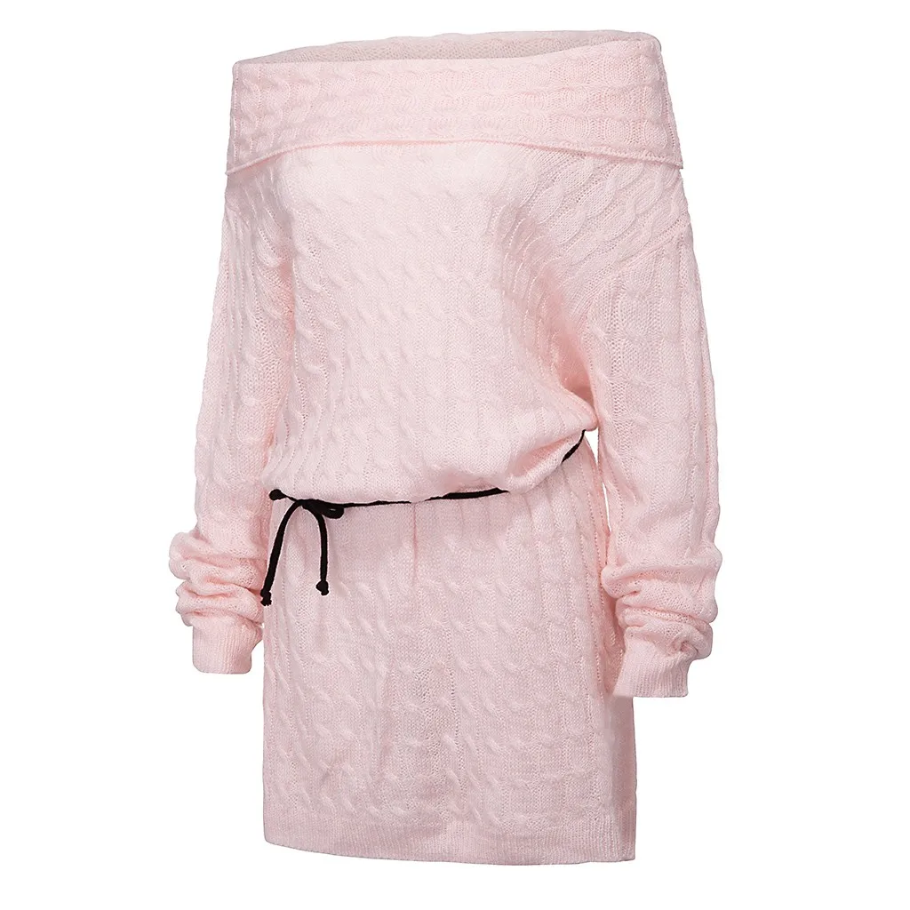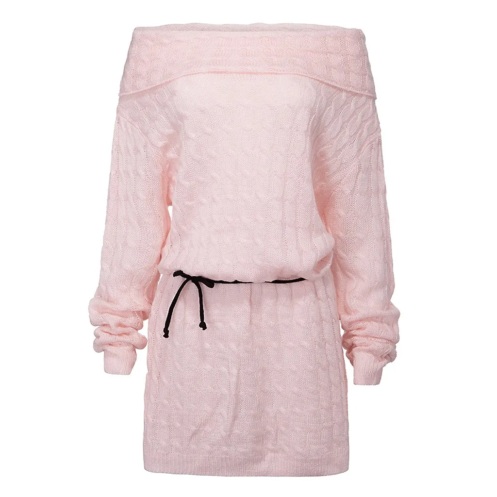 Womne/модный вязаный свитер с открытыми плечами; платье с длинными рукавами
