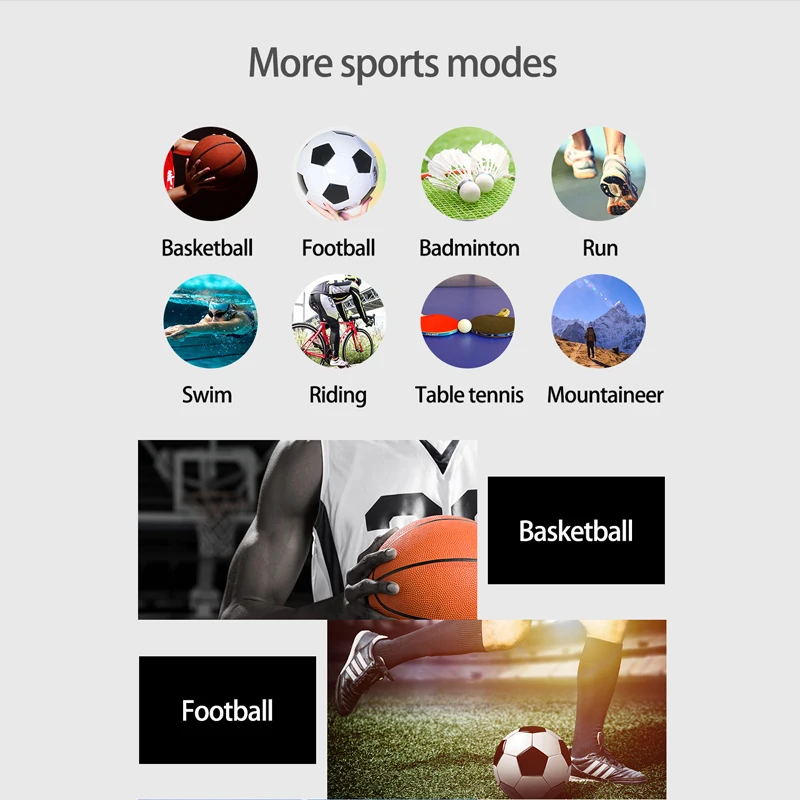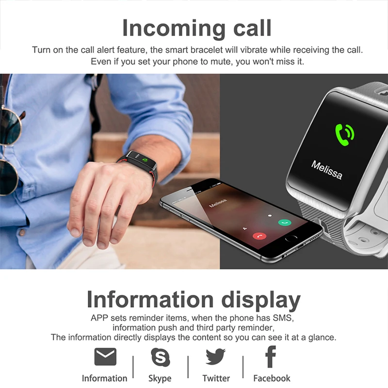 Поддержка: Динамический пульс, обнаружение артериального давления, отображение времени, подсчет шагов, калории, отображение расстояния, стандартная функция движения (шаг, расстояние, калории), мониторинг сна (время сна, качество сна). Уведомления о входящем звонке, push-сообщение, доступ к движению WeChat (опционально), напоминание о потере (мобильный телефон не подходит для напоминания). Напоминание о тревоге, напоминание о задачах, напоминание о событиях, настройка фитнес-цели, обмен информацией о фитнесе, обновление прошивки браслета через APK/APP и синхронизация данных с приложением.