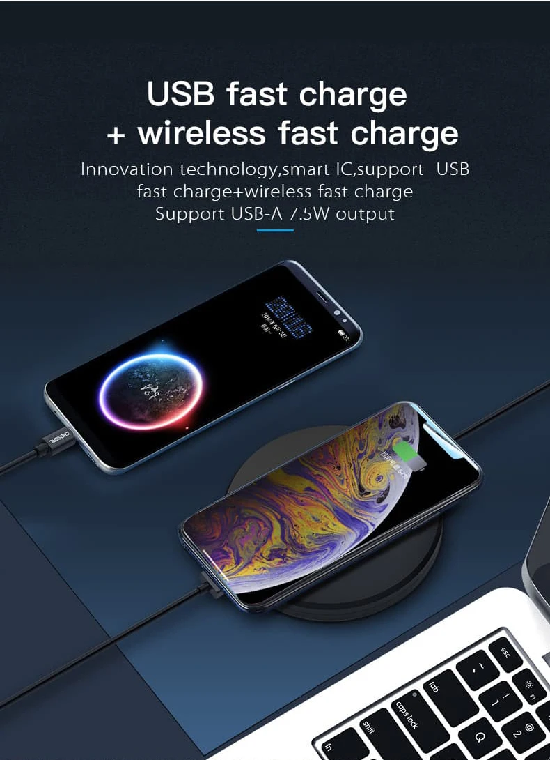 * Не нужно подключать телефон, просто положите его вниз на коврик, и он заряжает автоматически * Разноцветный светодиодный светильник указывает на состояние зарядки * Работает со всеми совместимыми смартфонами Qi, включая Samsung Galaxy S8, S8 +, Note 8, Apple iPhone 11/ 11 Pro, iPhone 8, iPhone 8 Plus, iPhone X * Посылка включает в себя: Беспроводную зарядную подставку/кабель Type C-USB 3,0/Руководство по быстрому запуску