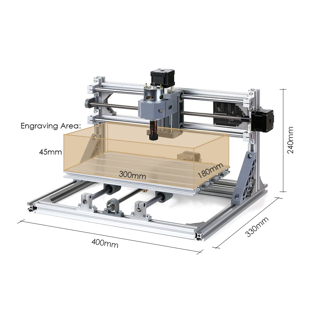 300x180x45 мм большая рабочая зона, программное обеспечение управления: GRBL (включая патрон ER11).