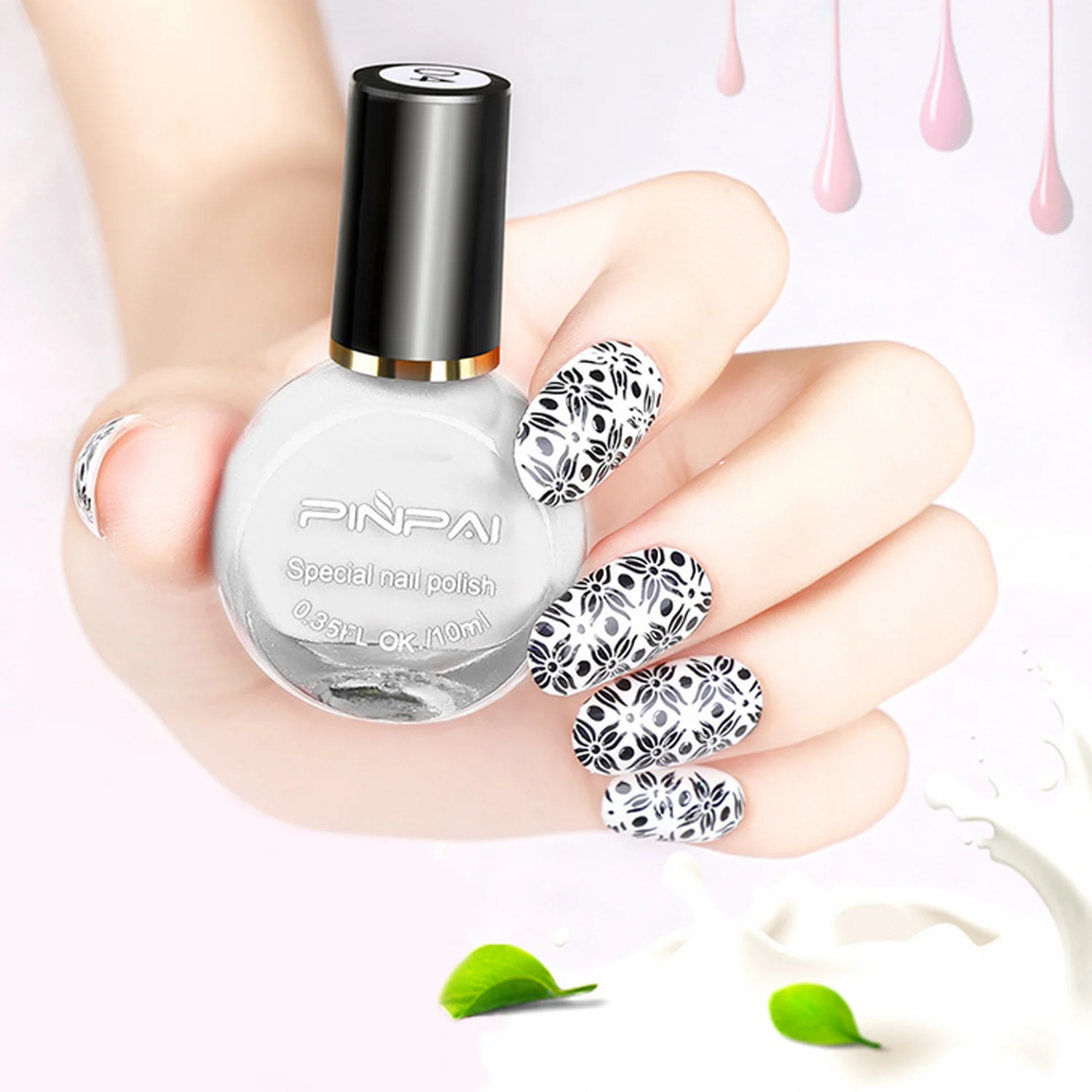 Набор включает в себя 1 10 мл Лак для ногтей и 1 10 мл верхнее покрытие, может работать с штамповочными пластинами, чтобы сделать ваш гвоздь более привлекательным.